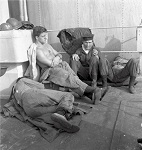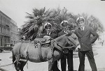 (JM139) Sailors from HMCS UGANDA collecting souvenirs off the hulk of the German Pocket Battleship ADMIRAL GRAF SPEE (JM140) Petty Officers from UGANDA ashore in Montevideo. PO Larry Restall 1st on left (JM141) PO Cook Smith ashore in Montevideo, Uruguay (JM142-JM143) Scenes around Montevideo, Uruguay