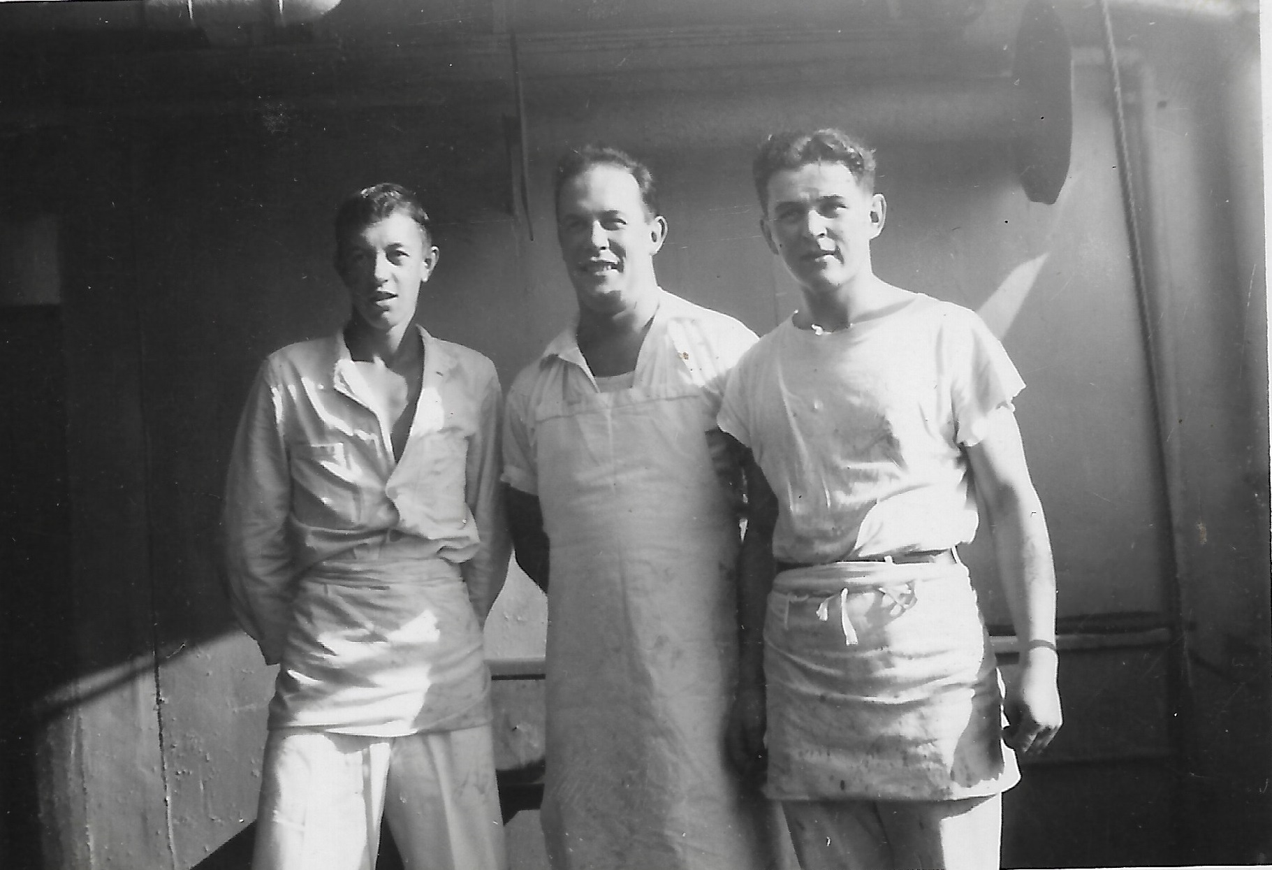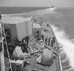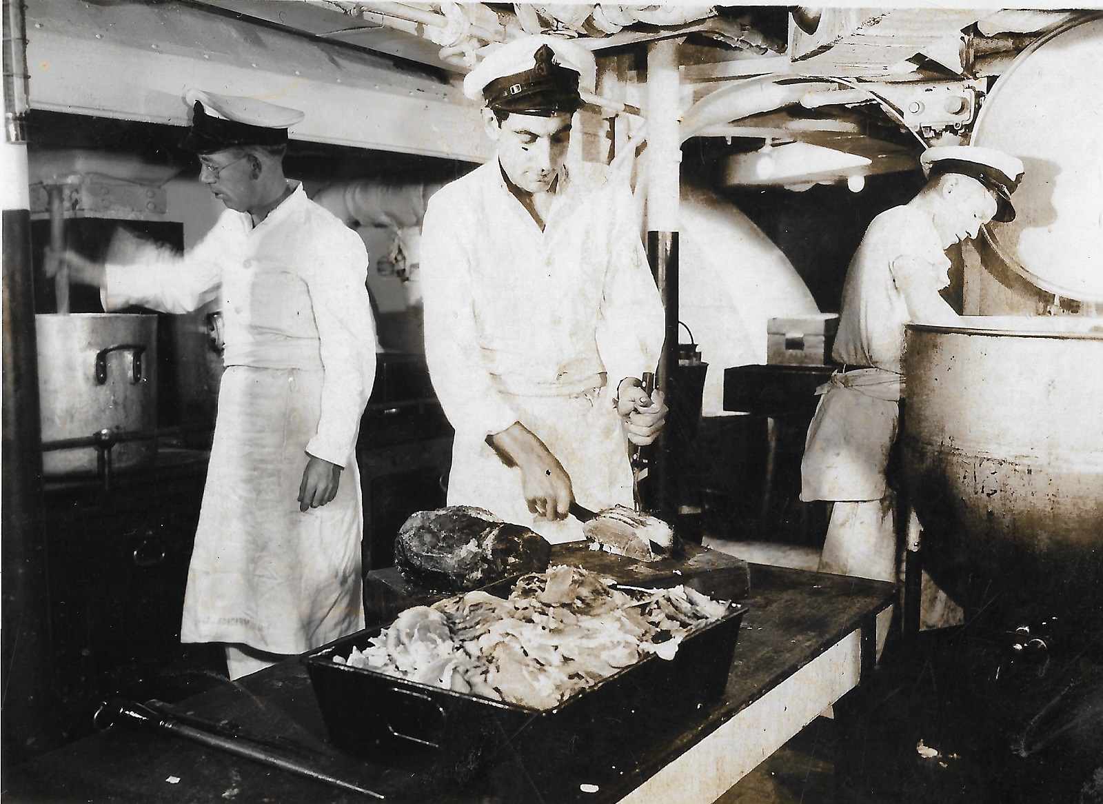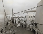 (JM87) Cooks on HMCS UGANDA (JM88) John McGowan by the forward 6-inch guns on HMCS UGANDA (JM89) Band and Guard formed up on the quarterdeck of HMCS UGANDA at sea - General Salute (JM90) Cooks on HMCS UGANDA