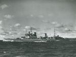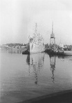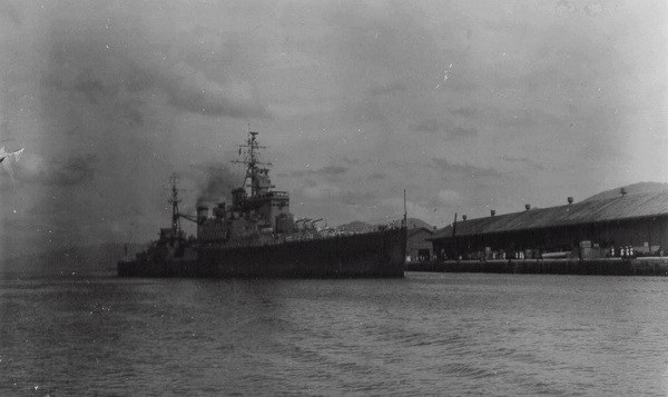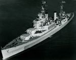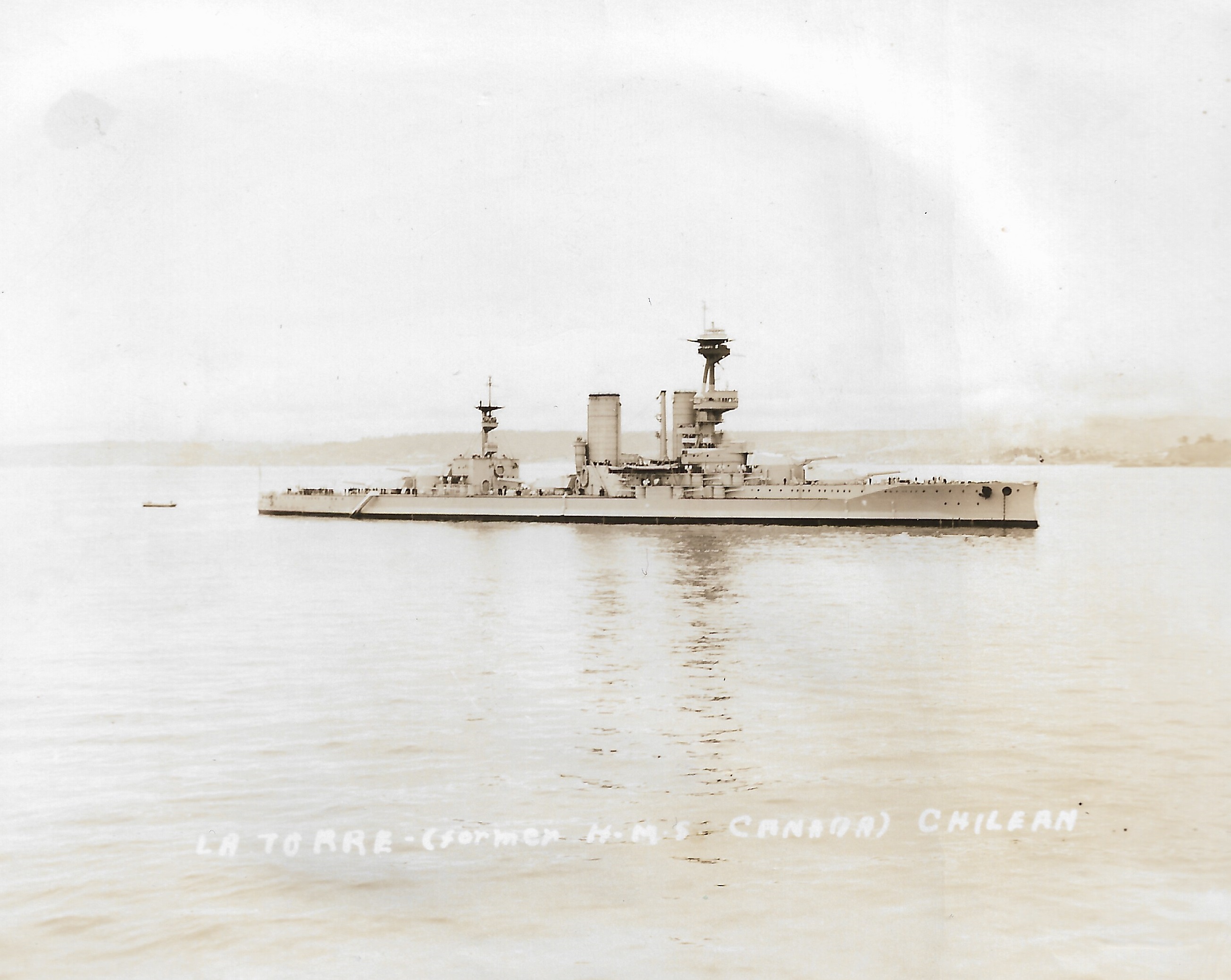 (JM114) HMCS UGANDA arriving Valparaiso (JM115) Chilean Battleship LA TORRE (former HMS CANADA)