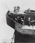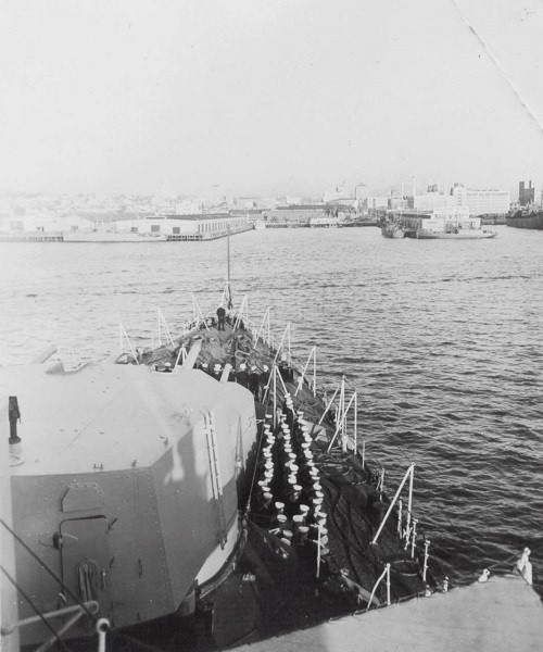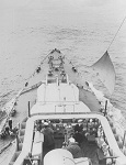 UGANDA remained on duty until relieved by HMS Argonaut. On 14 Jun 1945 she participated in the bombardment of Truk, and in Jul 1945 supported carriers operating against Tokyo. HMCS UGANDA was detached from the US Navy's Third Fleet on 27 July 1945 when HMS Argonaut arrived. UGANDA proceeded to Eniwetok, and then to Pearl Harbor for refuelling before heading for Esquimalt. En route to Pearl Harbor, one boiler suffered a liner collapse which would have resulted in the ship's withdrawal from active combat at any rate. UGANDA limped into Pearl Harbor on 04 Aug 1945 but was not welcomed because of the resentment that her crew was "quitting" the war. UGANDA departed after refuelling and proceeded for Esquimalt. En route to Canada, the crew heard news about the atomic bombs being dropped on Japan. They arrived in Esquimalt on 10 August 1945, the day that Japan announced its acceptance of the Instrument of Surrender.