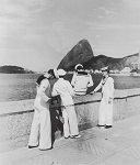 (JM149) Two UGANDA (left) sailors ashore in Rio with Sugarloaf Mountain in the background (JM150) UGANDA sailors ashore in Rio (JM151-JM152) Scenes around Rio