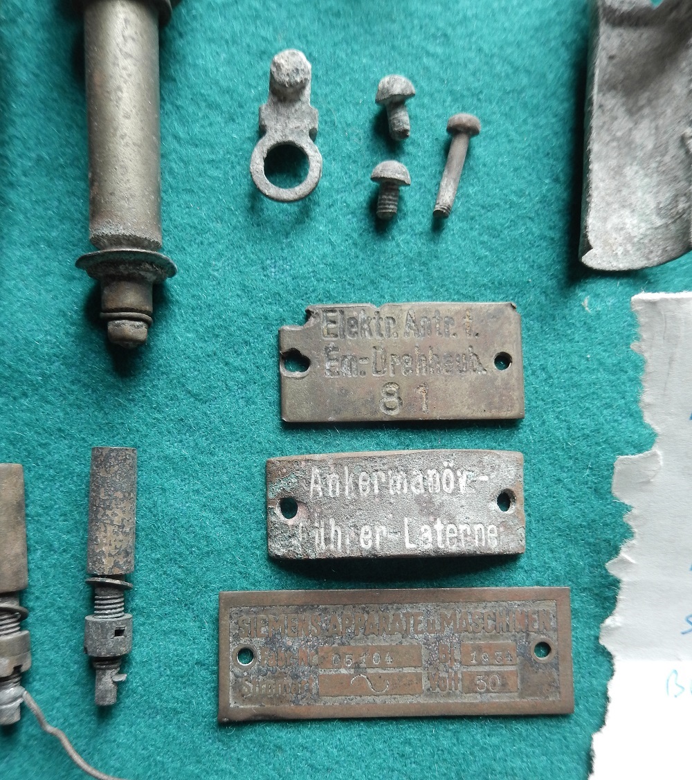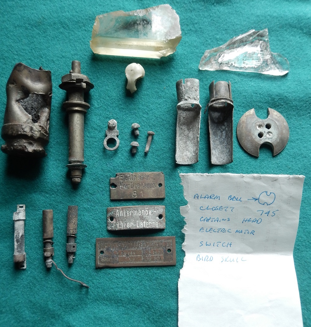 These artifacts were collected from the Admiral Graf Spee when some of UGANDA'S crew went aboard her. In the photo of the UGANDA sailors on the Graf Spee, the Petty Officer in the top right of the photo is the one who collected these items. It is regretted that the name of the Petty Officer is no longer remembered. Courtesy of George Cruikshank