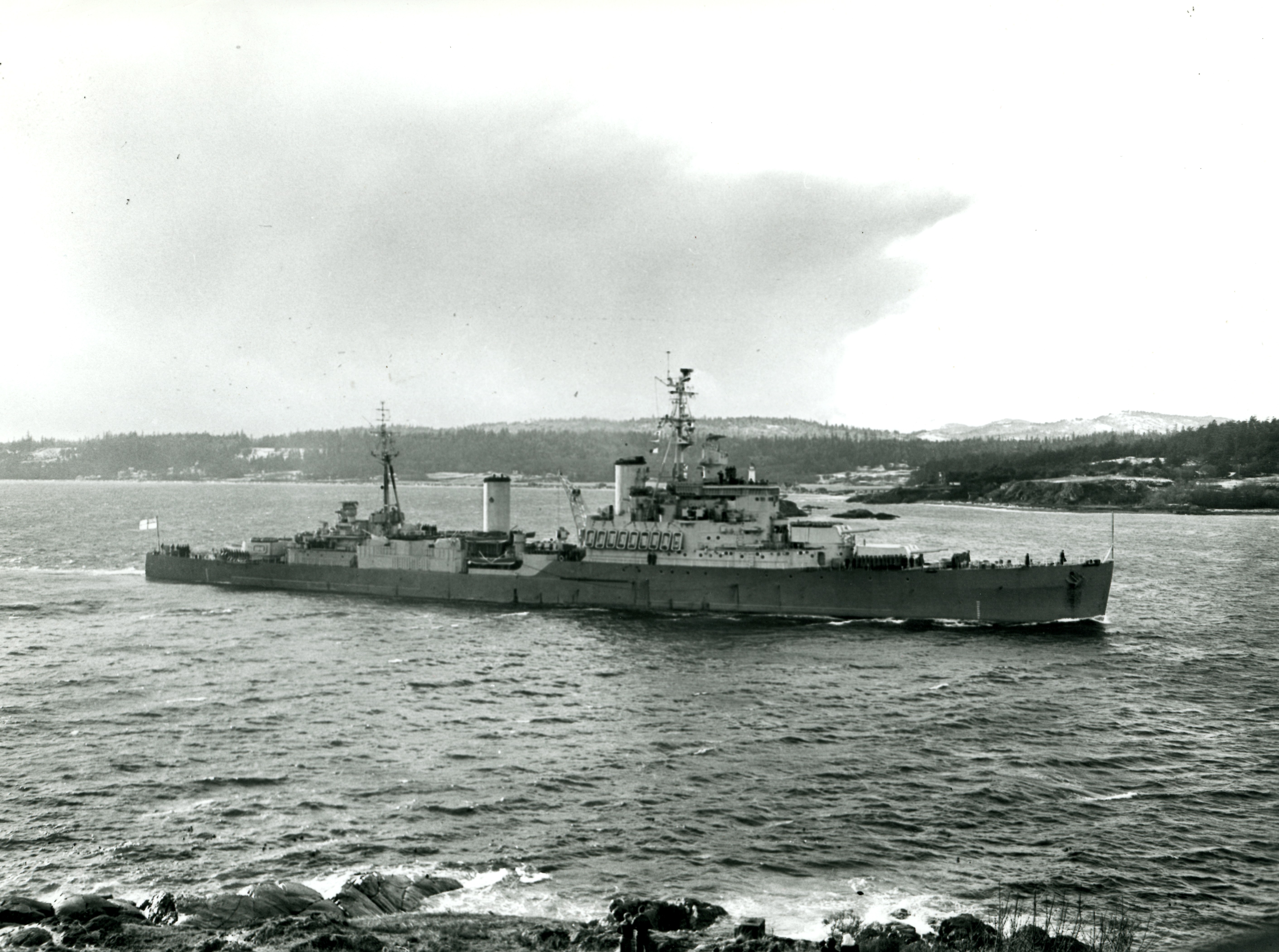 On 05 Feb 1946, HMCS UGANDA sailed from Esquimalt for a South American cruise. During that deployment she "rounded the Horn" west to east "under sail" and became the first ship of the RCN to do so. She returned to Esquimalt transiting from the Atlantic to the Pacific through the Panama Canal, arriving at Esquimalt on 17 May 1946. UGANDA was paid off into refit on 10 Jan 1947 and on completion of refit she was re-commissioned as HMCS Quebec on 14 Jan 1952.