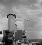 (UGA13) HMCS UGANDA receiving ammunition while at sea in the Pacific - Jun 1945 // Library and Archives of Canada 3191648 (UGA014) Japanese aircraft attaching HMCS UGANDA // Library and Archives of Canada 3191649