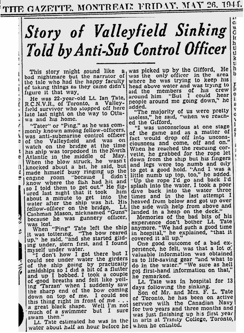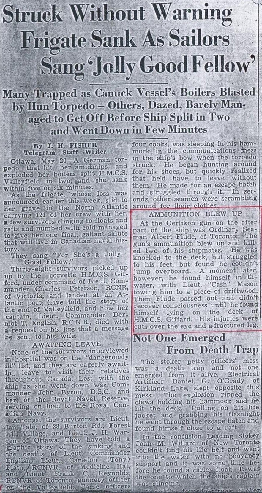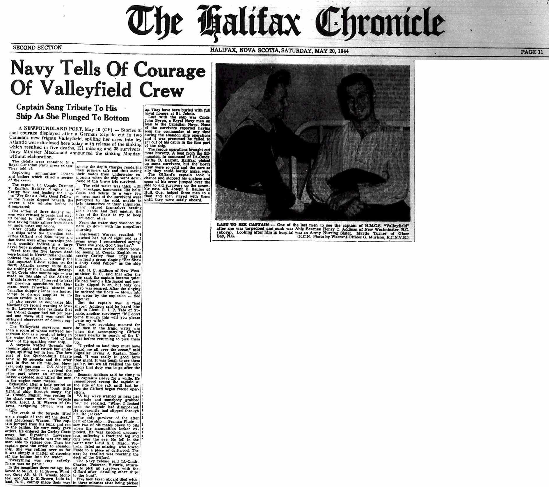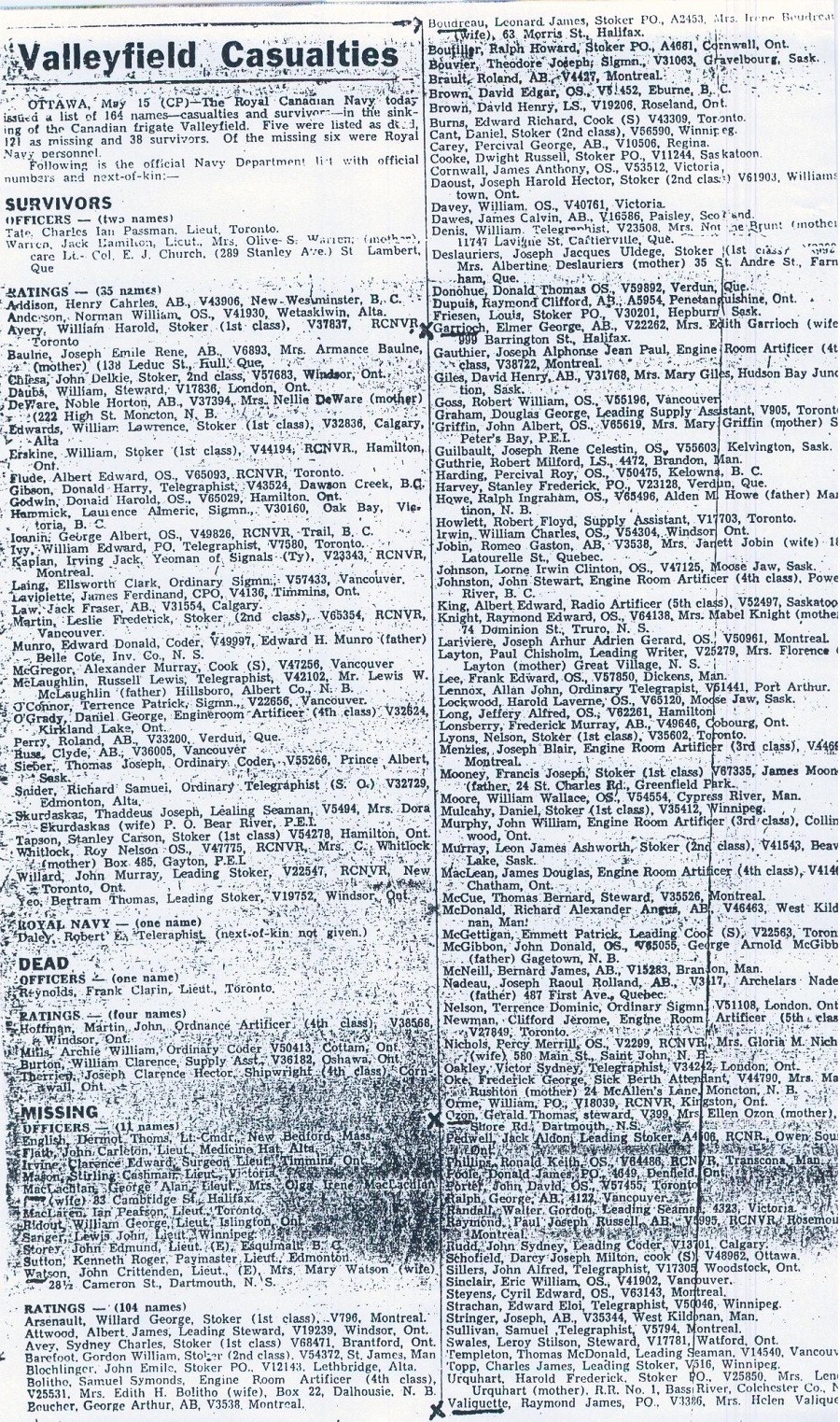 escort group C1, performing a search for the U-boat. HMCS VALLEYFIELD