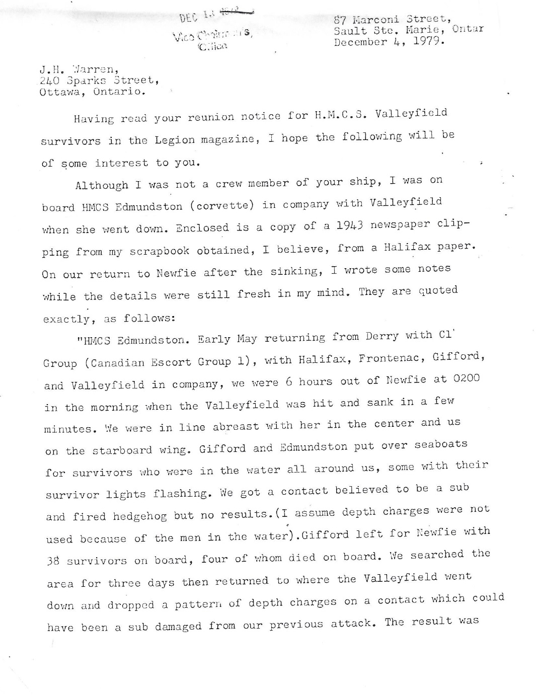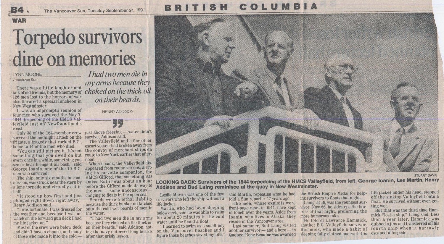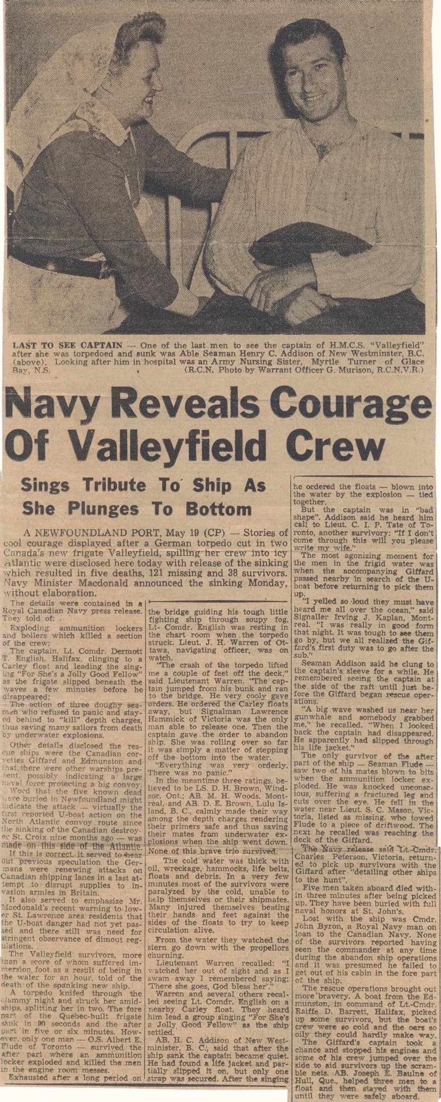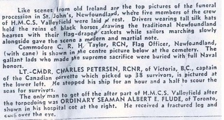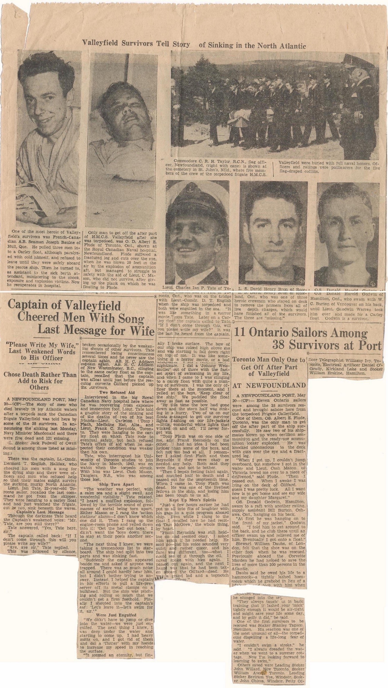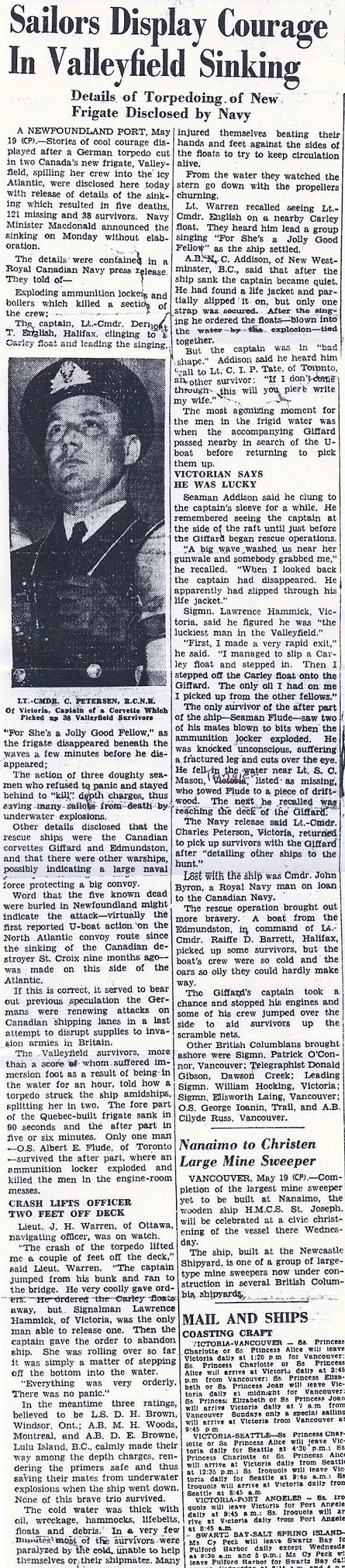 sinking of HMCS VALLEYFIELD. Jim Springgay was the Yeoman of Signals on