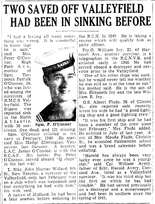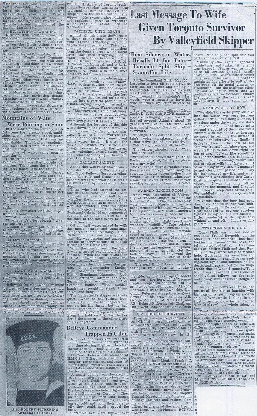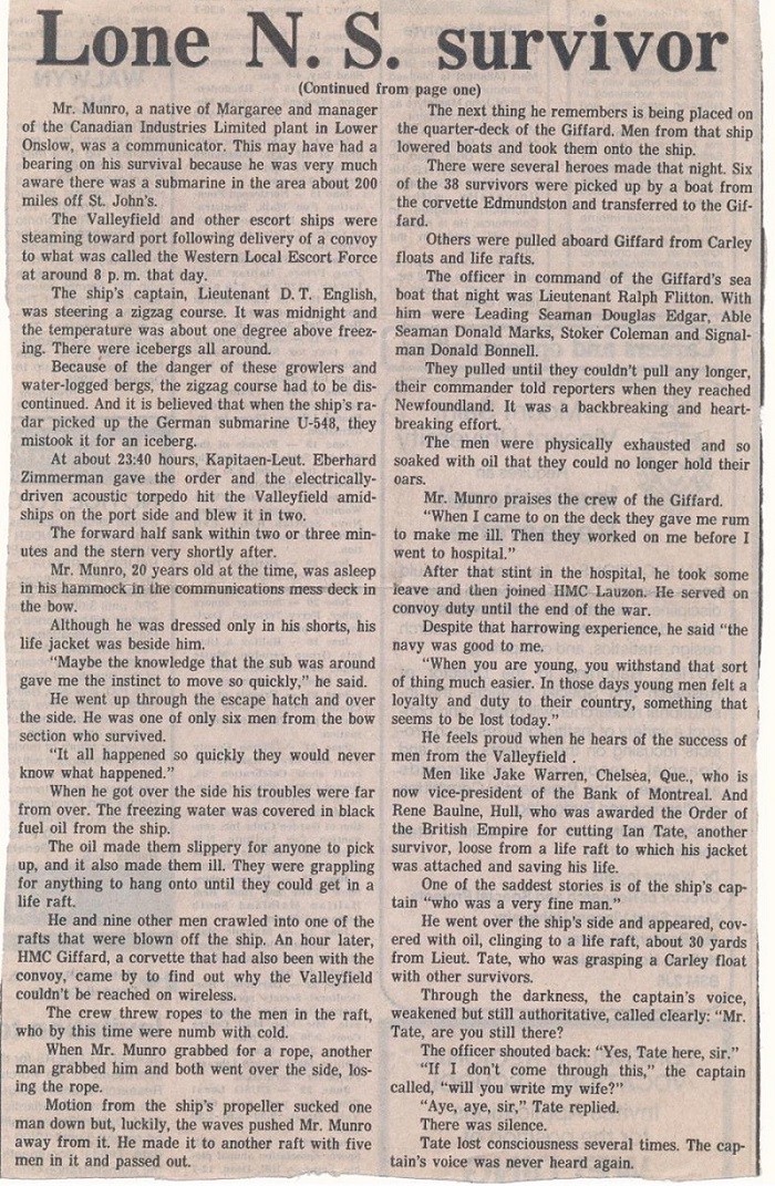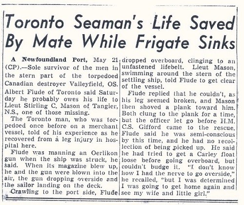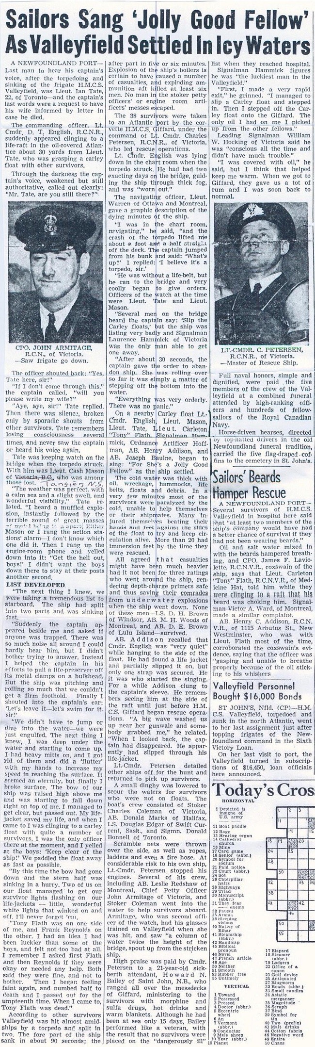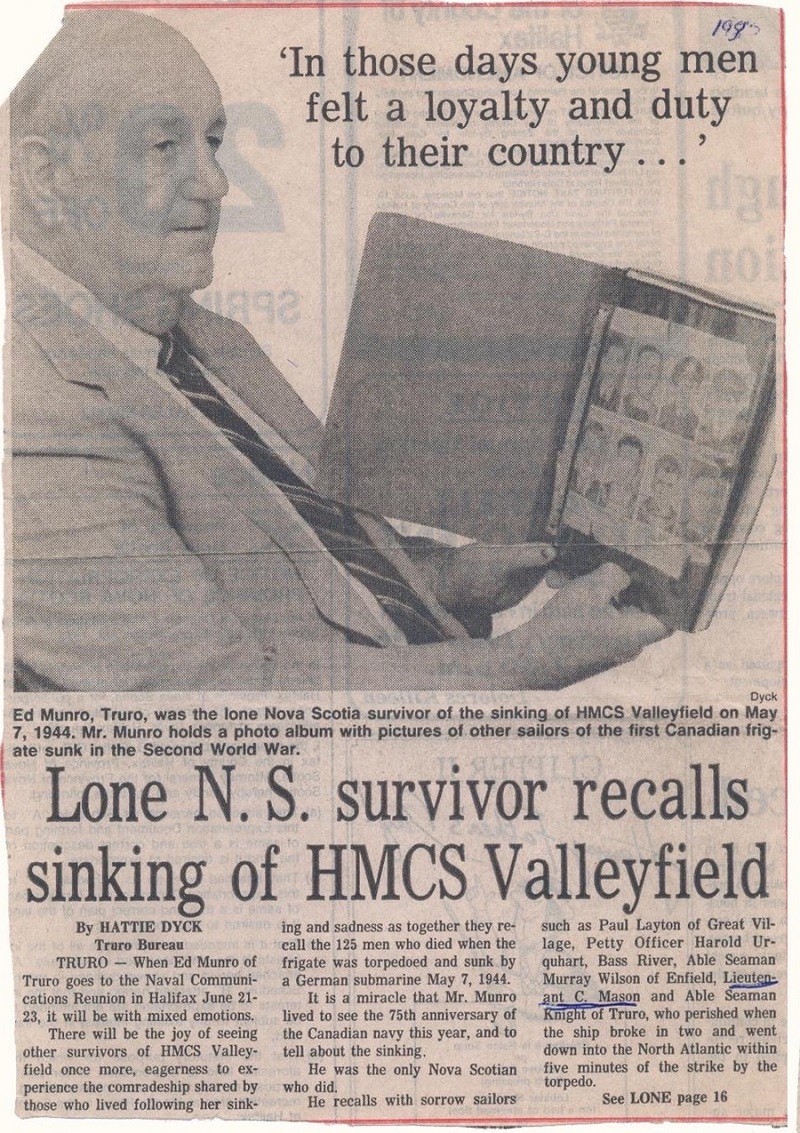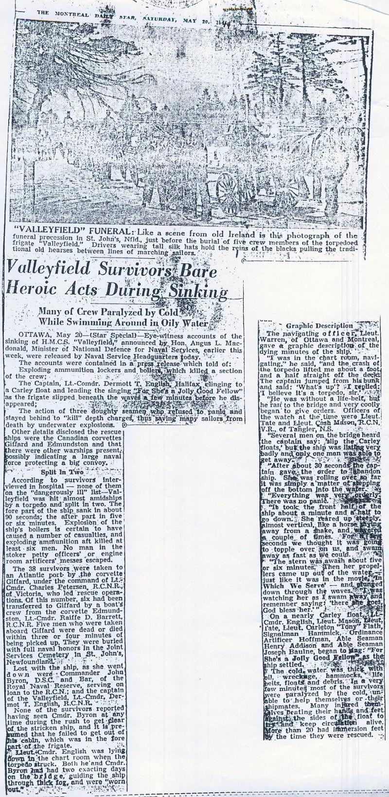 sinking of HMCS VALLEYFIELD. Jim Springgay was the Yeoman of Signals on