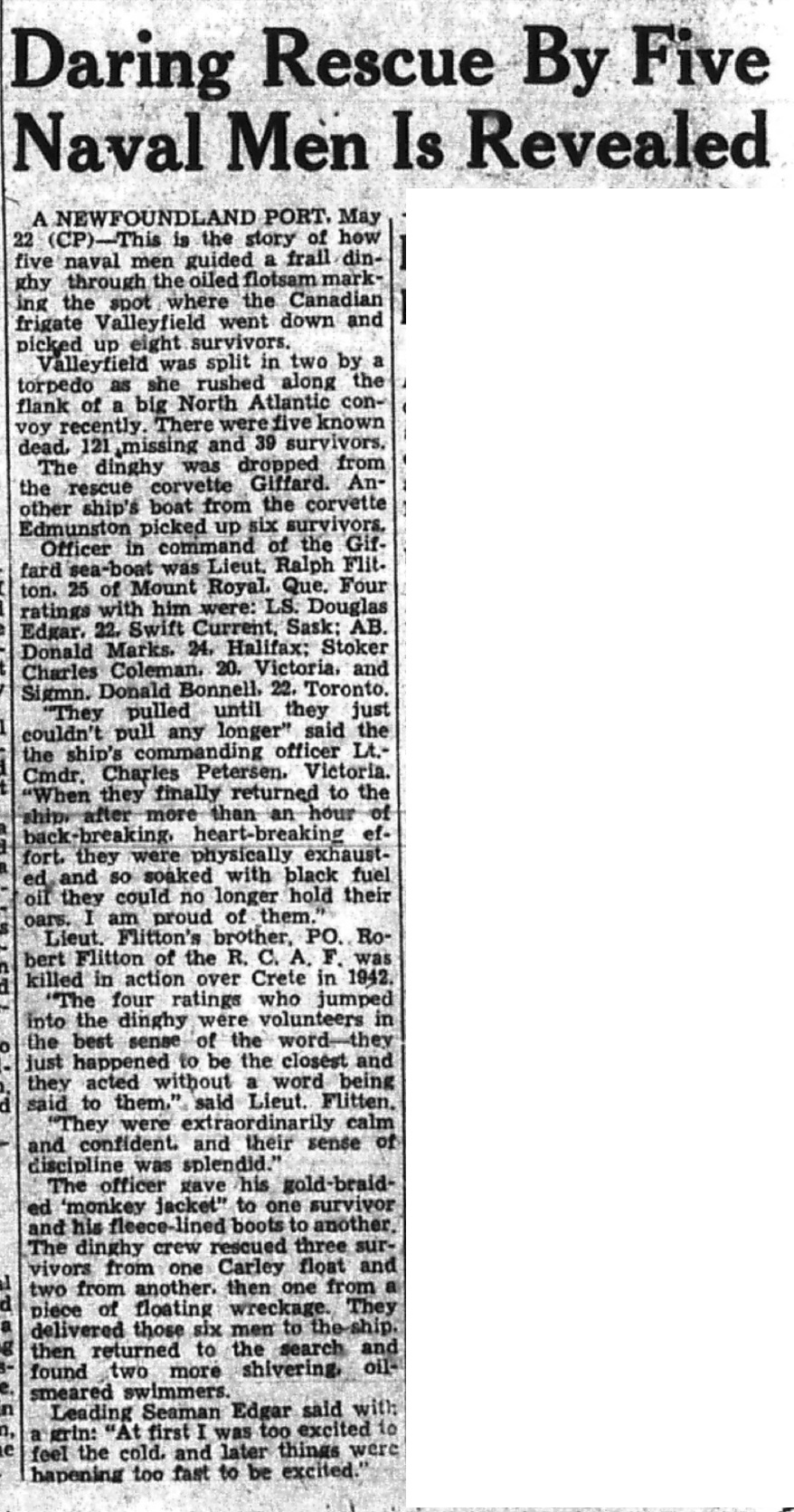 mentioned in the article: Lt Ralph Flitton, of Mount Royal,