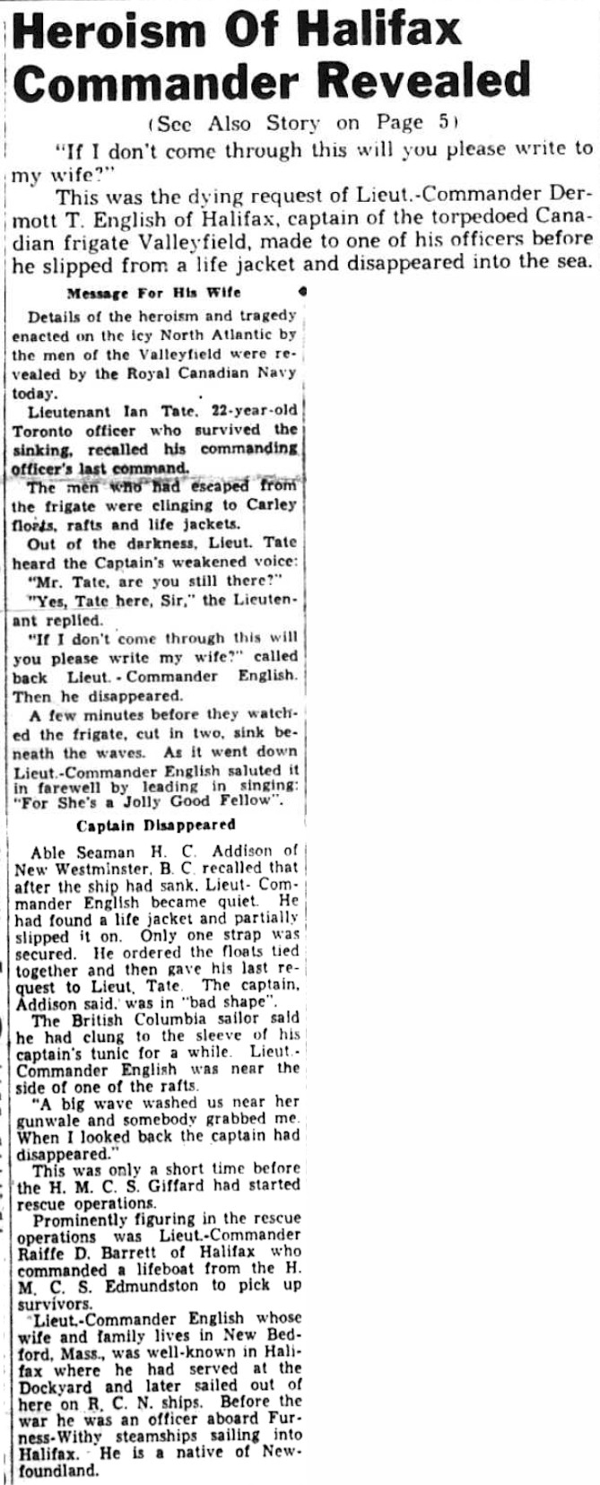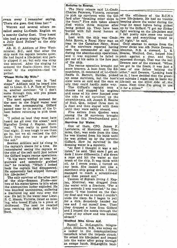English lost. The survivors were rescued by HMCS GIFFARD K402. She was