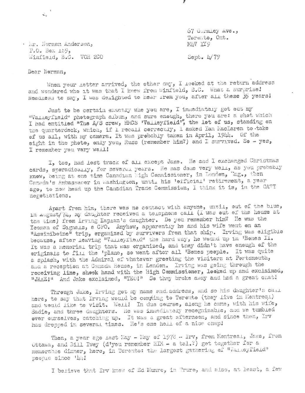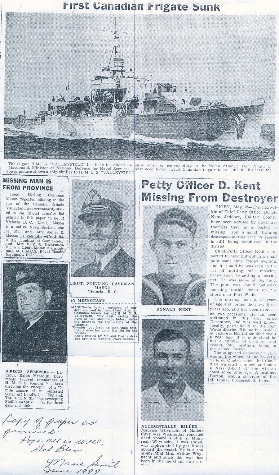 Tel Harry Norman, HMCS VALLEYFIELD - MID