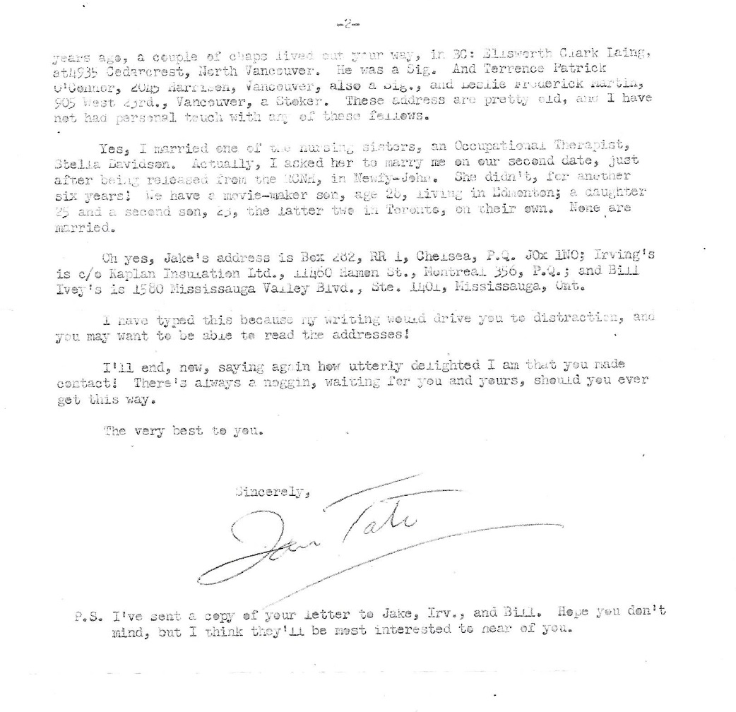 letter from Jim Springgay to J.H. Warren recounting his memories of the