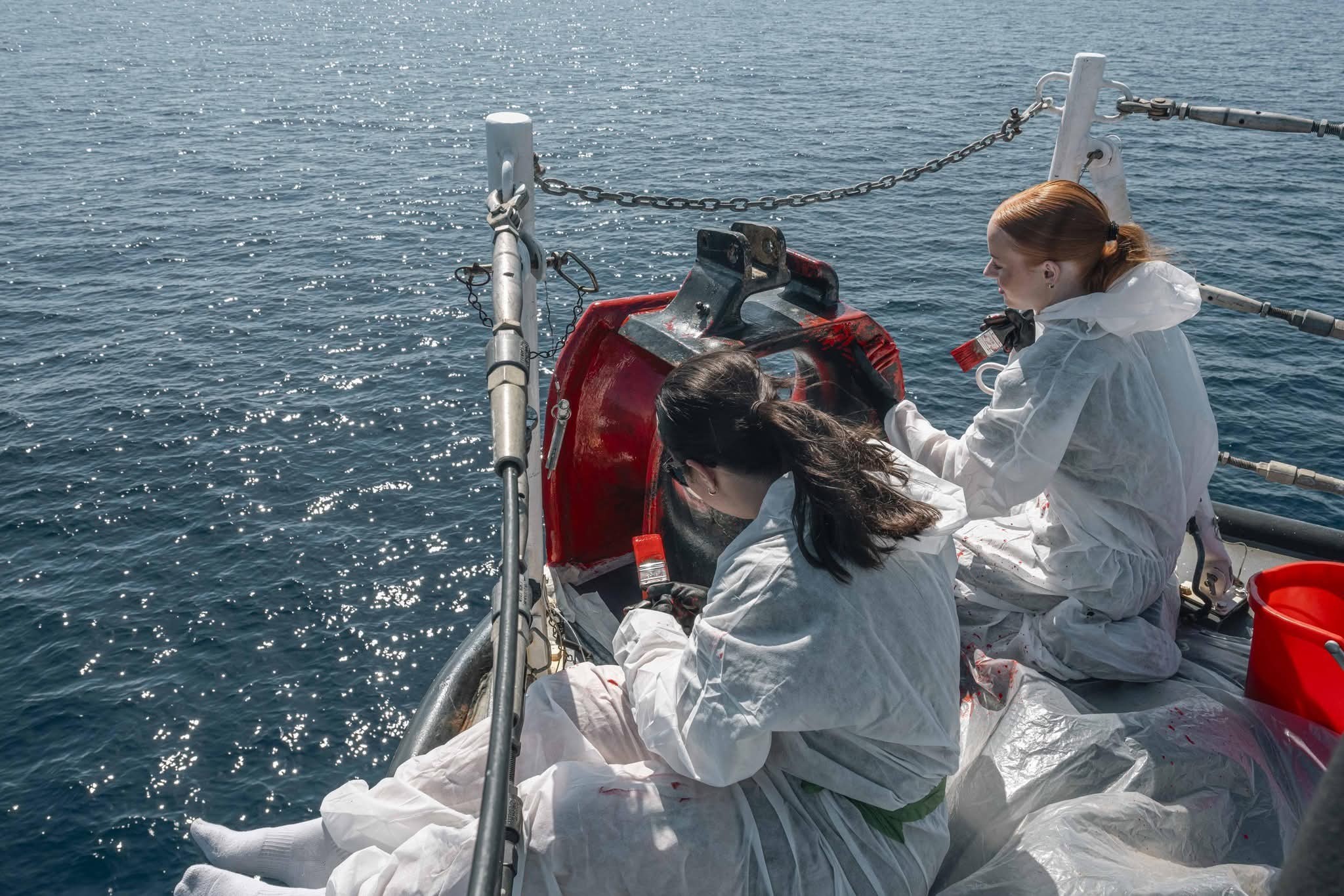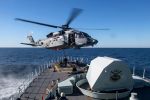 (VDQ008) HMCS VILLE DE QUÉBEC with two aircraft carriers - HMS PRINCE OF WALES on her port bow and USS GEORGE WASHINGTON on her starboard bow - and ten F-35s flying in formation overhead. Exercise OP HORIZON 2025 // Photographer: Cpl Brendan Gamache, Formation Imaging Service (VDQ009) HMCS VILLE DE QUÉBEC sails underneath the Al Salam Bridge in Egypt while transiting through the Suez Canal as part of the UK-led Carrier Strike Group during OP HORIZON - 24 May 2025 // Photographer: Corporal Brendan Gamache, Formation Imaging Service (VDQ010) SLt Jillian Rowan and S2 Audrey Merrifield paint the bullring of HMCS VILLE DE QUÉBEC red to symbolize the ship's crossing of the equator while sailing as part of the UK-led Carrier Strike Group during Op HORIZON in the Java Sea - 29 Jul 2025 // Photographer: Cpl Brendan Gamache, Formation Imaging Services