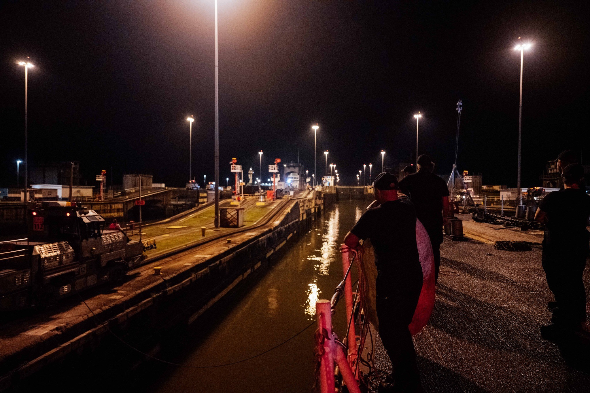 (VDQ016 - VDQ017) HMCS VILLE DE QUÉBEC approaching the Miraflores Locks of the Panama Canal 25 Oct 2025 (VDQ018 - VDQ019) HMCS VILLE DE QUÉBEC northbound in the Miraflores Locks on the Panama Canal 25 Oct 2025 // Source: webcam