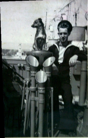 (JW01) HMCS WALLACEBURG J336 (JW02) SD John Walsh painting ship on HMCS WALLACEBURG J336 (JW03) John Walsh on HMCS WALLACEBURG with the ship's mascot