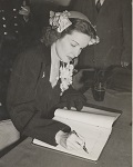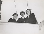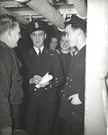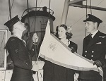 (WD95) LCdr Robert A.S. MacNeil, RCNVR, CO welcomes Gail Patrick aboard HMCS WALLACEBURG - RCN Neg # HN1110 (WD96) Gail Patrick and LCdr MacNeil hold the 6th Victory Loan pennant while a signalman prepares to hoist it. The 6th Victory Loan drive commenced Apr 1944 - RCN Neg # HN1109 (WD97) Gail Patrick visits the seaman's mess deck - RCN Neg # HN1108 (WD98) Gail Patrick signs the ship's guest book - RCN Neg # HN1112 (WD99) Gail Patrick with 2 unknown officers on the bridge of HMCS WALLACEBURG - RCN Neg # HN1113
