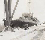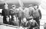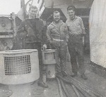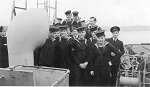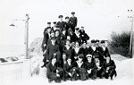 (WD92) Duty Quartermasters on HMCS WALLACEBURG J336 during winter. HMCS MELVILLE J263 in the background (WD93) Duty Quartermasters on HMCS WALLACEBURG J336. Note: It is still during the period of winter dress, but at least there is no snow on the ship and it looks much warmer than in the previous photo (WD94) A not to well organized group photo by the after antenna mast on HMCS WALLACEBURG K337