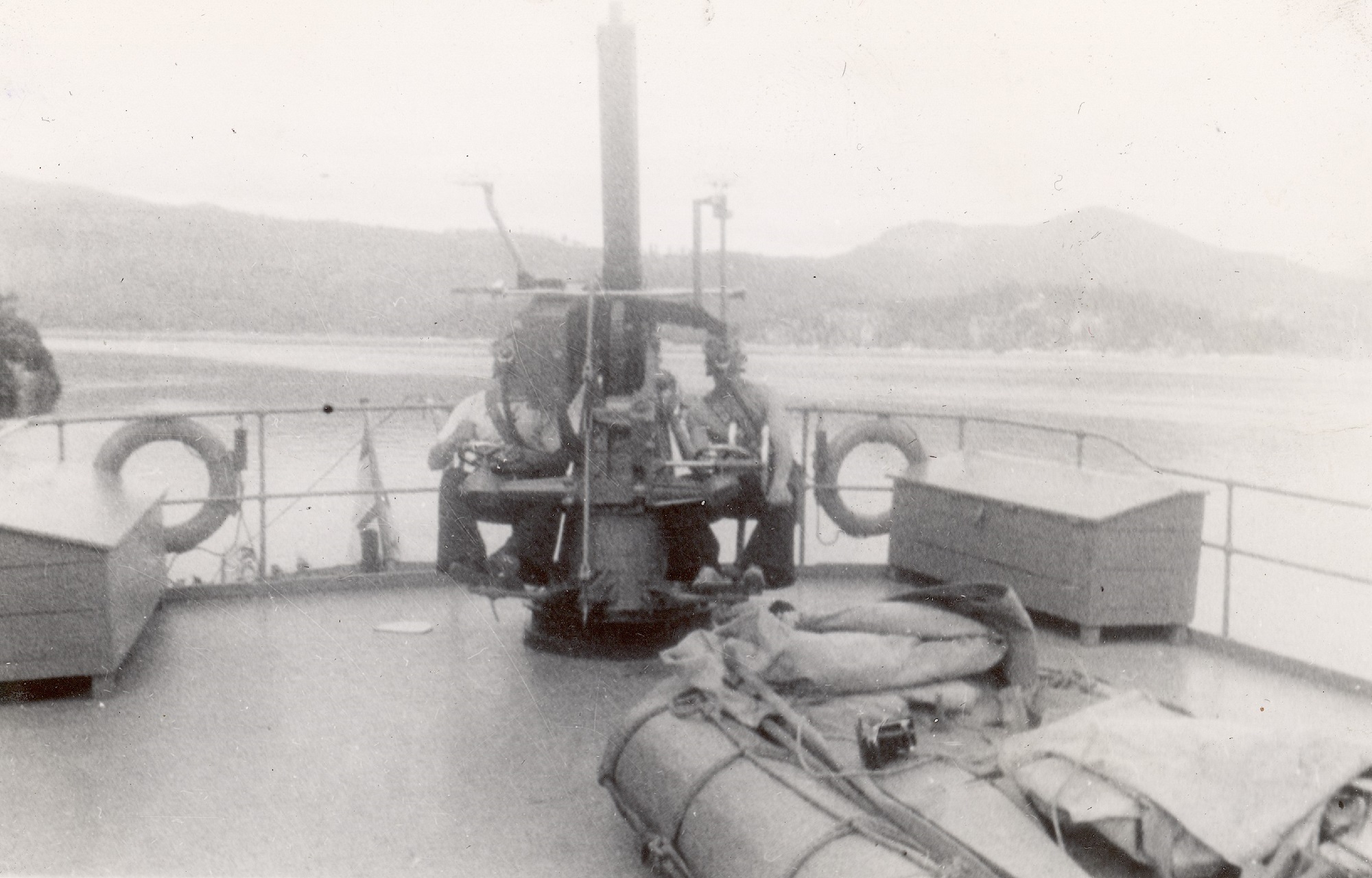 (JM16) Gunnery training on HMCS WALLACEBURG J336 (JM17) Oerlikon crew on HMCS WALLACEBURG J336