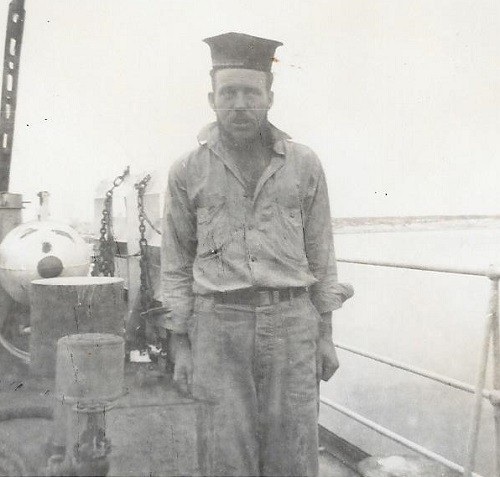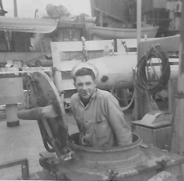 (VS11) Victor Sipko peeling potatoes aboard HMCS WALLACEBURG J336 (VS12-VS15) HMCS WALLACEBURG J336 at unknown location