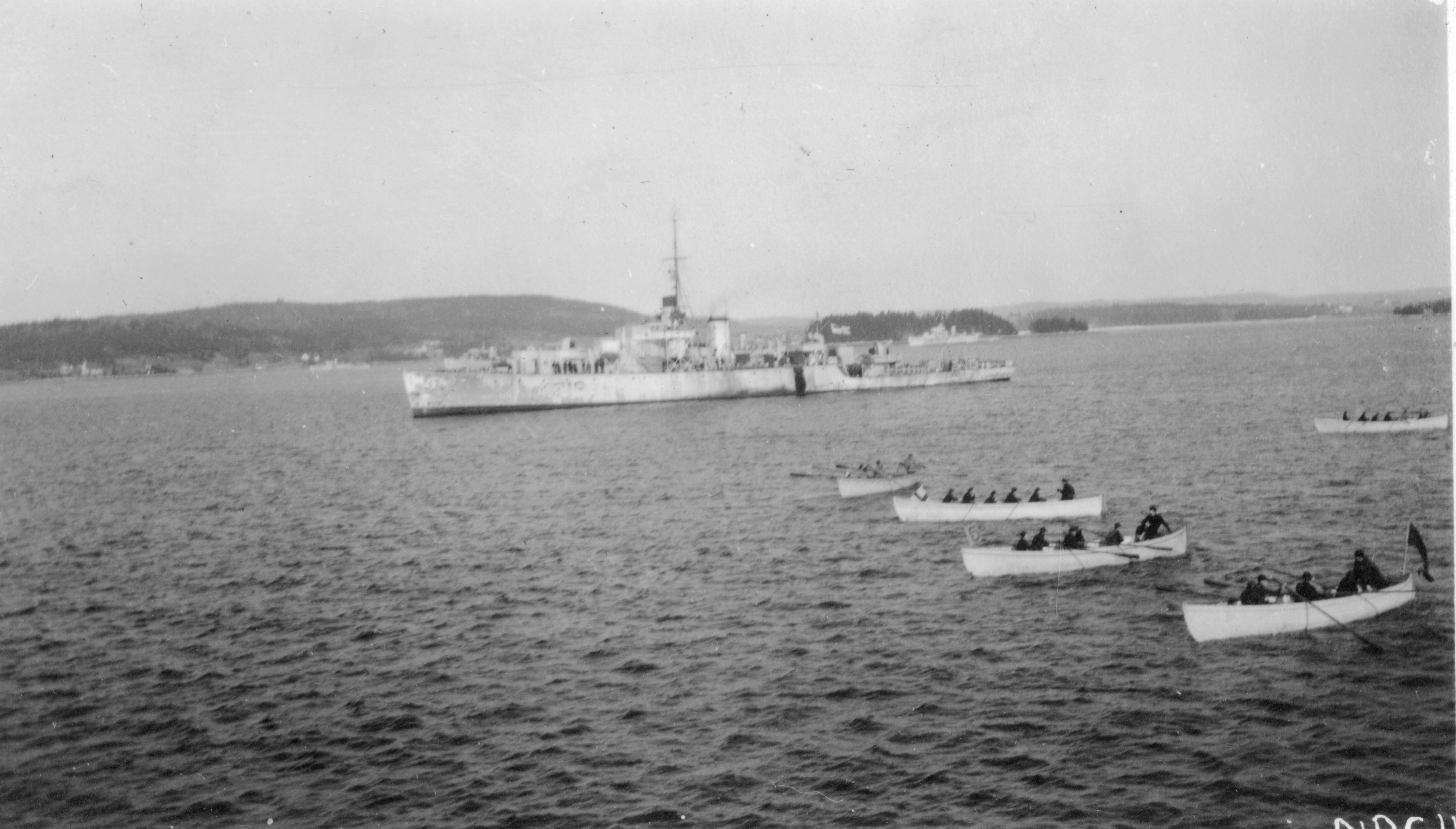 (WD72) The boat's crew of HMCS WALLACEBURG J336 pose for a photo (WD73) Gunnery drills on HMCS WALLACEBURG J336. The gun crew looks pretty happy (WD74) The Doc and SBA on an AA mount on HMCS WALLACEBURG J336 (WD75) Escorts at anchor. Believed to be in Bedford Basin, Halifax, NS (WD76) Boat crews get in place for a whaler race in Bedford Basin, Halifax, NS