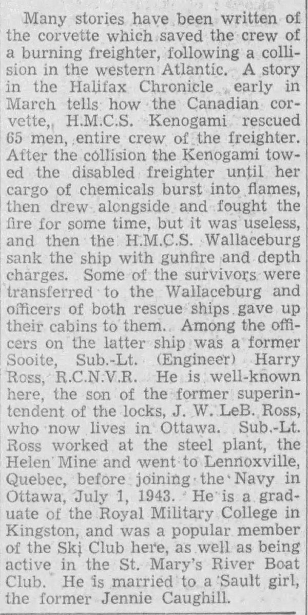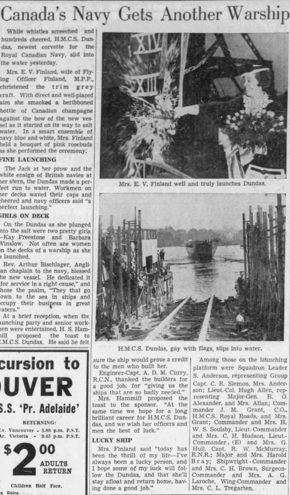 Article on the Christening of HMCS WALLACEBURG The Windsor Star 22 Nov 1943