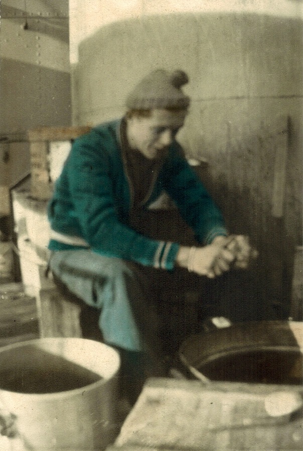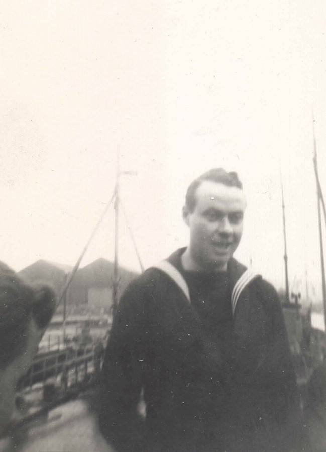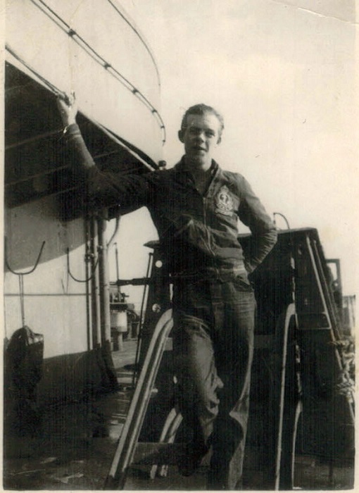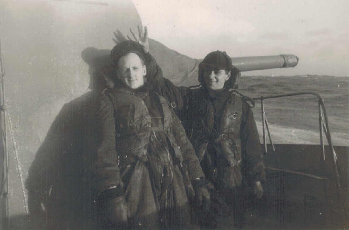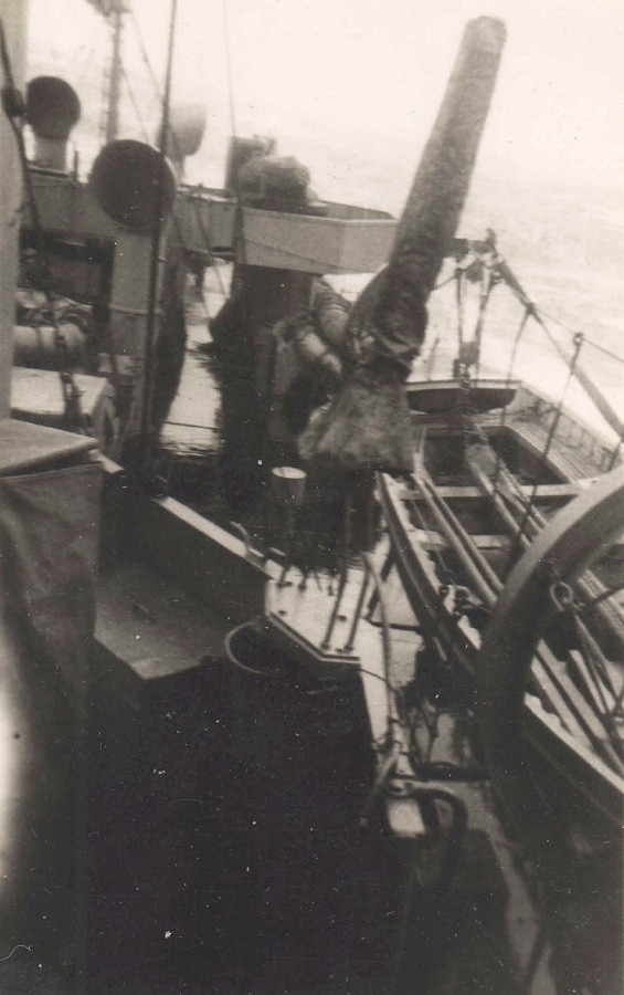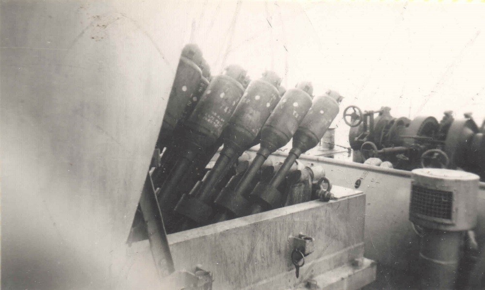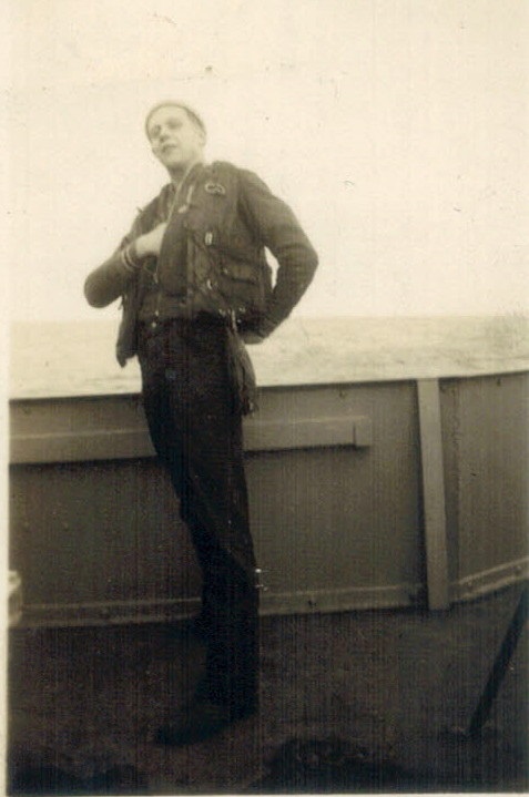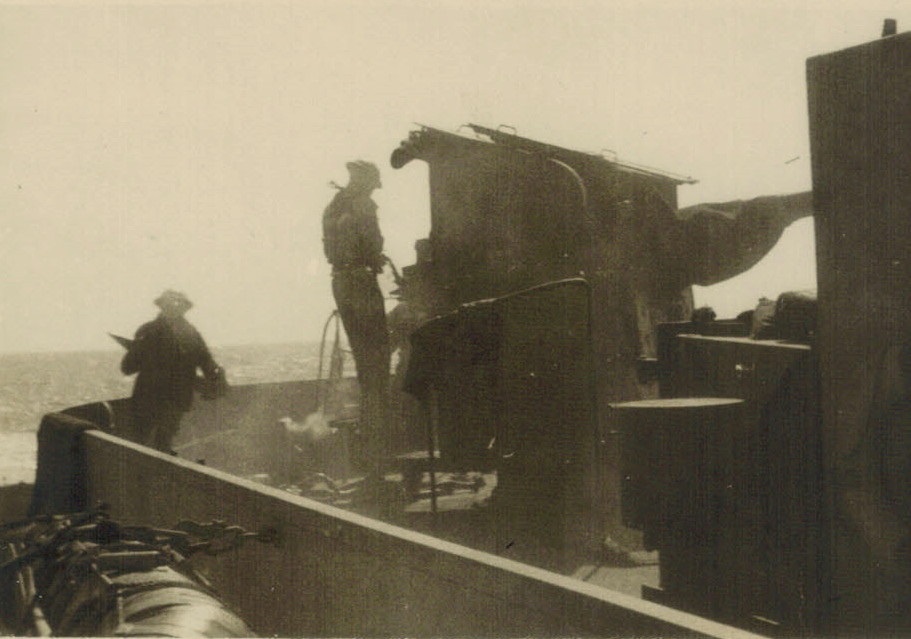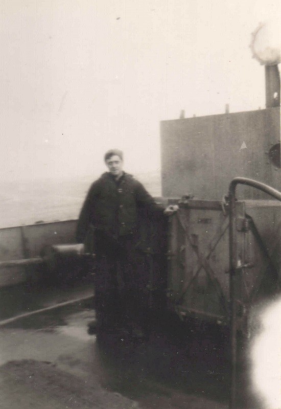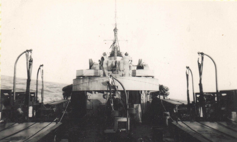 Gerald Jenson on HMCS Wentworth by the aft gun