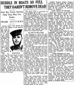 (JVB001) Article on the rescue of JERVIS BAY survivors - The Toronto Star 14 Nov 1940