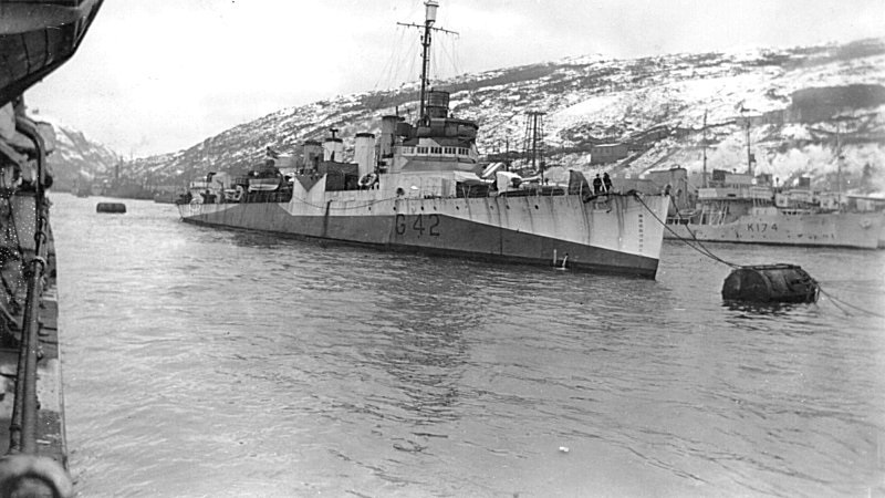 On 23 October 1940 the YARNELL left the US Navy and was commissioned into the Royal Navy as HMS LINCOLN G42. She arrived at Belfast on 9 November and joined the First Escort Group, Western Approaches Command. She spent the next year escorting convoys from the mid ocean meeting point back to Britain. From September 1941 to February 1942 she underwent a refit at Woolwich. After the refit the LINCOLN was given to a Norwegian crew, and allocated to the Western Local Escort Force, operating on the Newfoundland Coast. In July 1942 she transferred to the operational control of the RCN - keeping her Norwegian crew. She operating in Canadian waters until the end of 1943. She then returned to the UK, where she was placed in the reserve on the Tyne. On 26 August 1944 she was transferred to the Soviet Union, where she was used as a source of spare parts for the eight Wickes class destroyers already in Soviet service."
