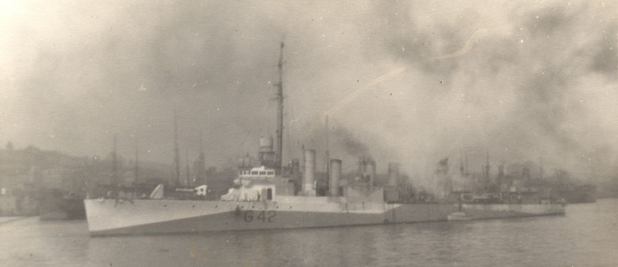 (RAS098) HNoMS LINCOLN G42 at St. John's, Newfoundland From the collection of Ross Somerville, Leading Coder, RCNVR Courtesy of Kathy Somerville