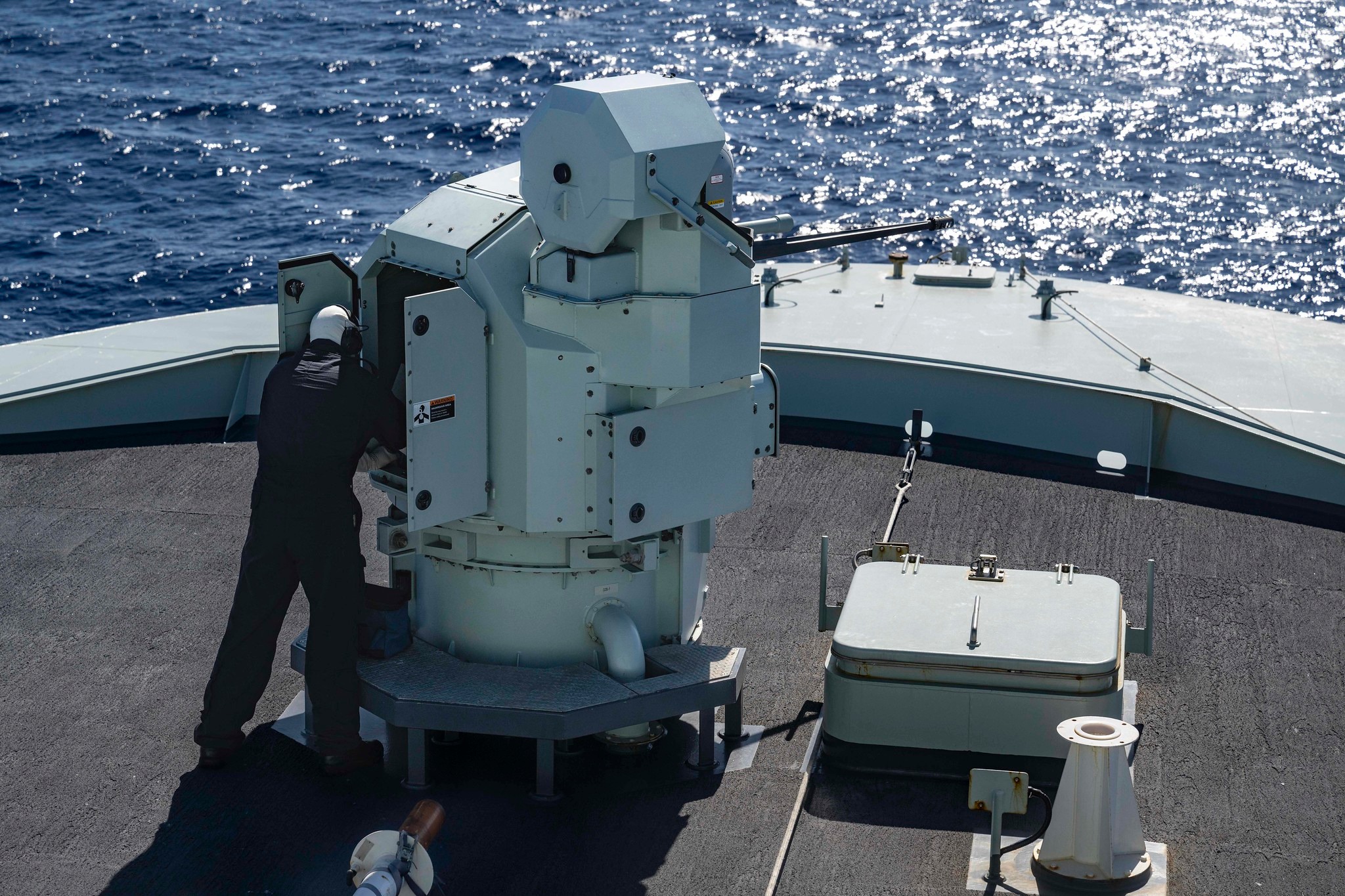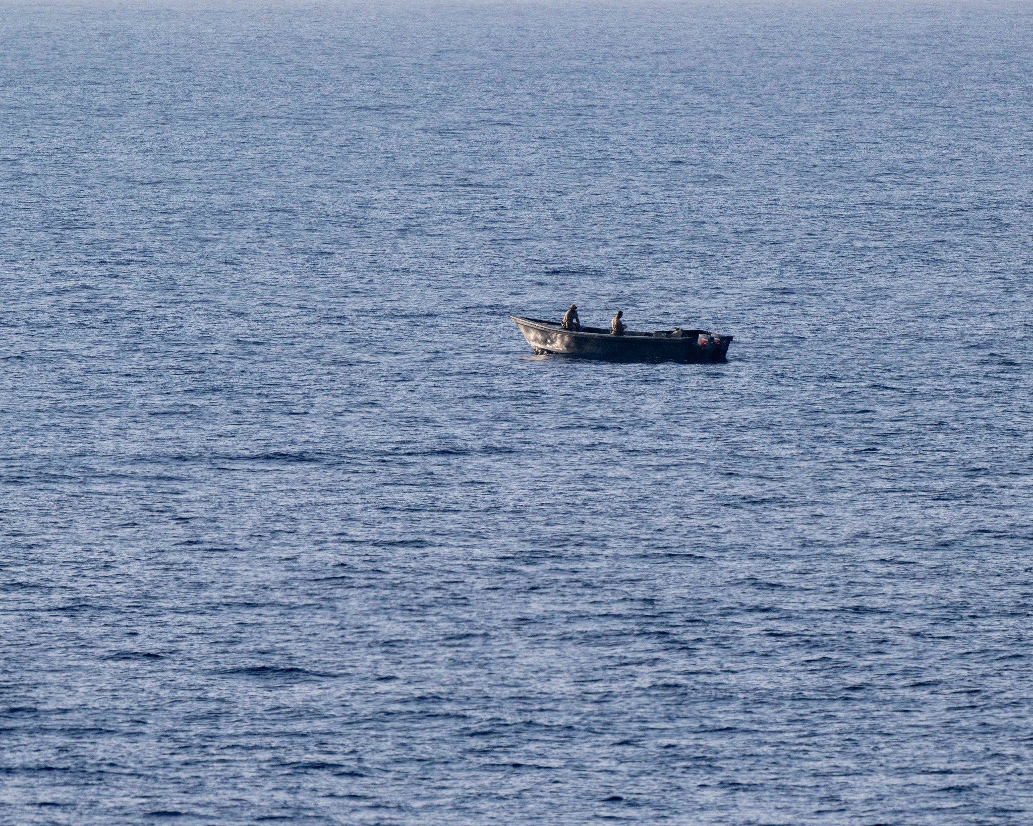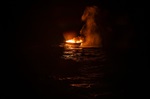 (MBK009-MBK013) Following the successful interception of narcotics on Op CARIBBE, the crew of HMCS Margaret Brooke used the 25 millimetre Mk 38 machine gun system to sink the smuggling vessel. This is standard procedure to avoid leaving a navigational hazard to other mariners in international waters. // Source: RCN official Facebook page - posted 22 Feb 2024