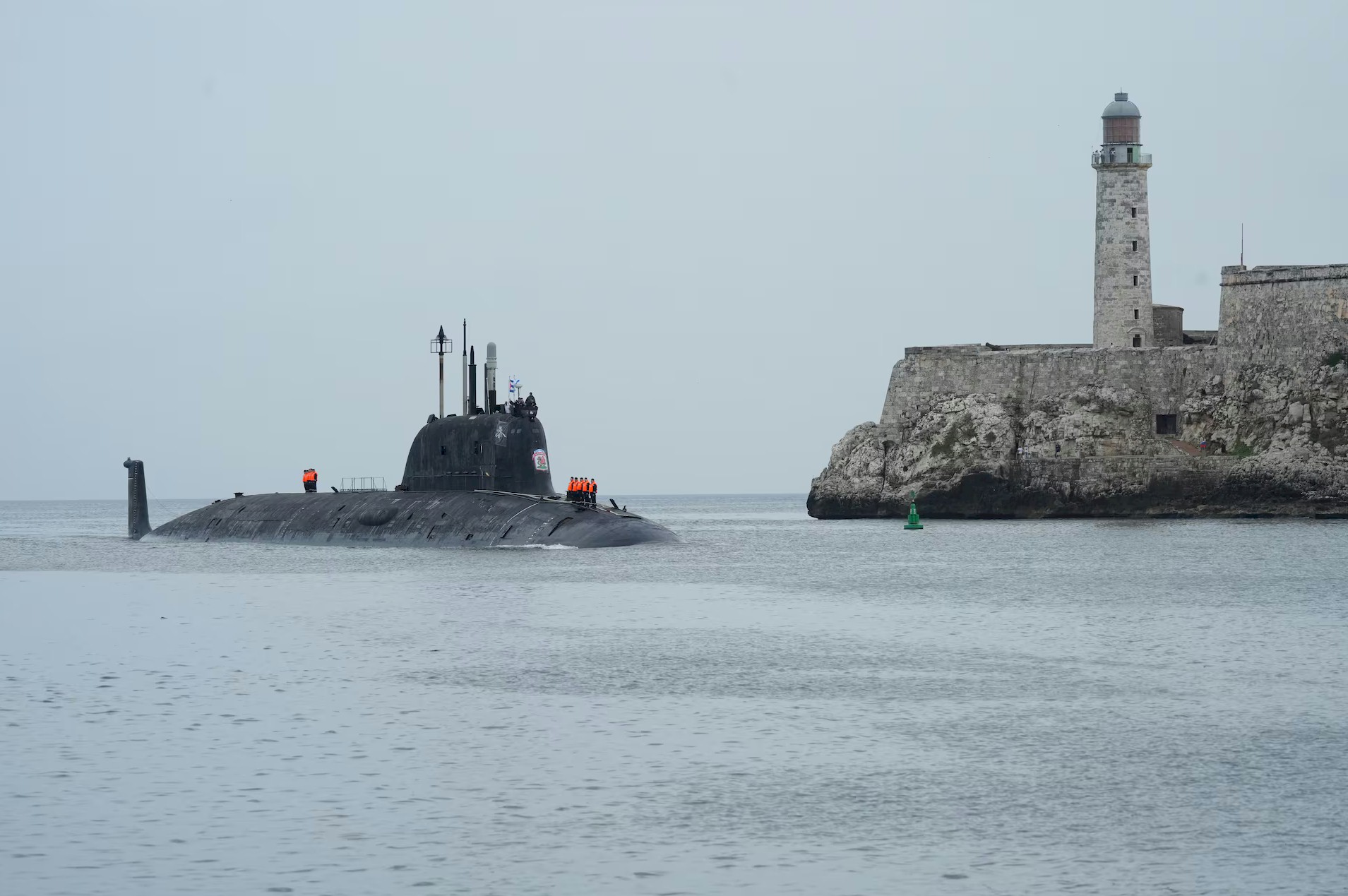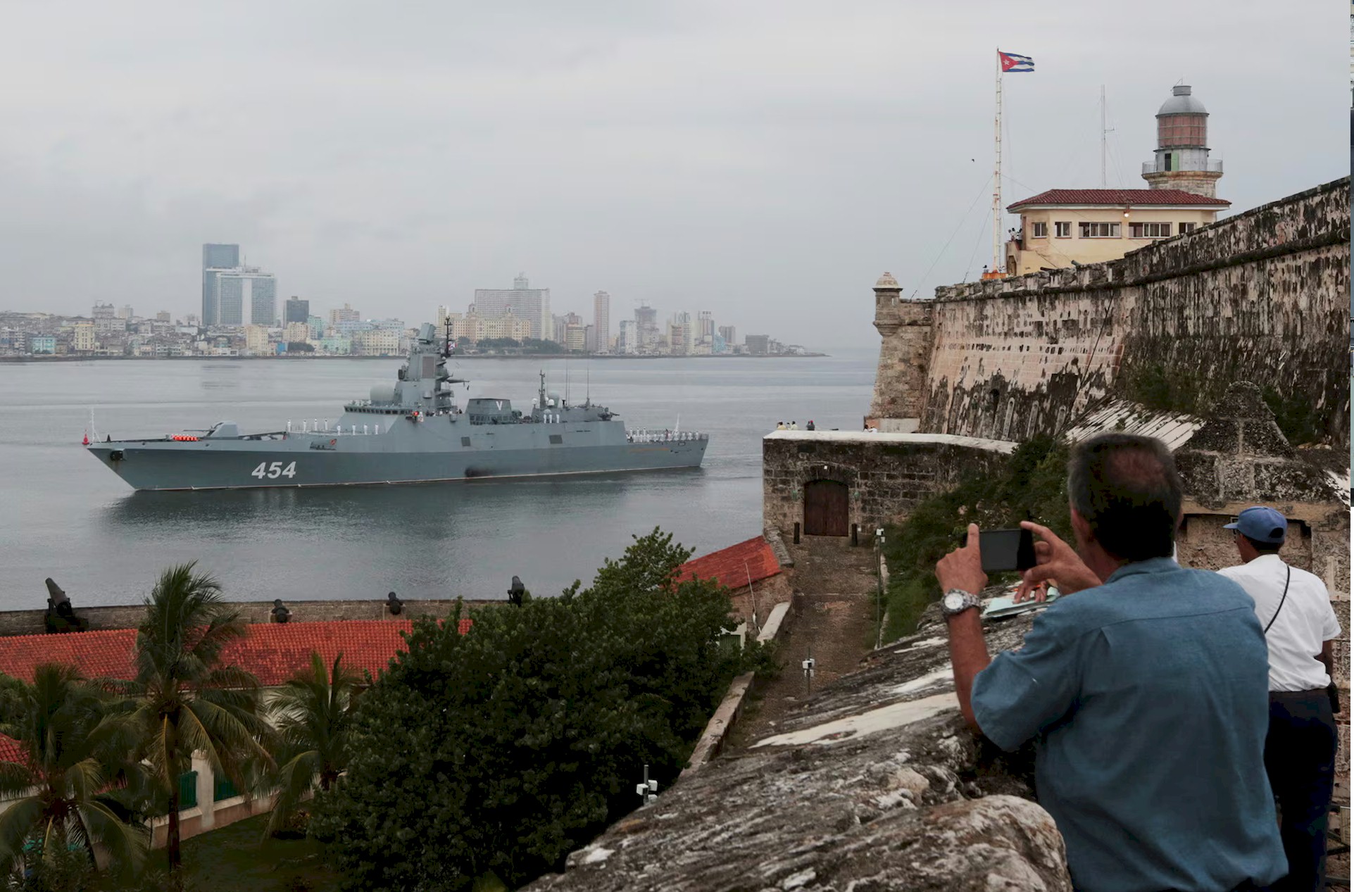 (MBK014) Russian frigate Admiral Gorshkov as it enters Havana’s bay, Cuba 12 Jun 2024. The Russian navy ships are expected to remain in Havana until 17 Jun 2024 (Source: Reuters / Stringer) (MBK015) Russian nuclear-powered cruise missile submarine Kazan enters Havana’s bay, Cuba 12 Jun 2024 (Source: Reuters / Alexandre Meneghini) (MBK016) HMCS MARGARET BROOKE passes by Russian nuclear-powered cruise missile submarine Kazan and frigate Admiral Gorshkov, as it enters Havana’s bay, Cuba 14 Jun 2024 (Source: Reuters / Alexandre Meneghini) (MBK017) The crew of the Russian nuclear-powered cruise missile submarine Kazan watch the Canadian navy patrol boat HMCS Margaret Brooke passing by as it enters Havana’s bay, Cuba 14 Jun 2024 (Source: REUTERS / Stringer)