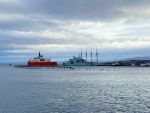 (MBK018) HMCS MARGARET BROOKE, the first Canadian Navy vessel to sail to Antarctica, sits in Admiralty Bay as scientists conduct research, with the help of the crew. (MBK019) HMCS MARGARET BROOKE crossed the Antarctic Circle at 66 degrees 33.767 minutes south, 67 degrees 10.822 minutes west, marking yet another historic first for the RCN. The ship and its crew have joined the rare “Order of the Red Nose” while deployed on Op PROJECTION. (MBK020) HMCS MARGARET BROOKE, Chilean Navy Polar Class 5 icebreaker ALMIRANTE VIEL AGB-46 and Spanish Navy JUAN SEBASTIÁN DE ELCANO, a 4-masted topsail midshipmen training schooner in Punta Arenas, Chile - March 22, 2025 // Photographer Cesar Quezada