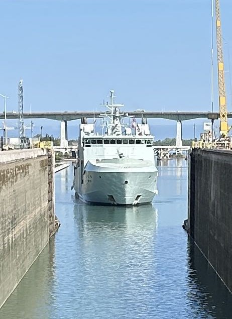 (MBK023) HMCS MARGARET BROOKE transiting the Welland Canal // Photographer: Rhonda Read // Courtesy of Bruce Walter (MBK024 - MBK026) HMCS MARGARET BROOKE entering one of the locks on the Welland Canal on route from Lake Ontario to Lake Erie // Photographer Stephane Alan Legal, Lt (N), ret'd // © Stephane Alan Legal 2025 (MBK027) HMCS MARGARET BROOK transiting the Detroit River during her 2025 Great Lakes Deployment // Photographer: Ken Bosse // © Ken Bosse 2025