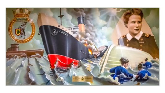On October 14, 1942, during a crossing of the Cabot Strait off the coast of Newfoundland, the ferry SS Caribou was torpedoed by the German submarine U-69. The ferry sank in five minutes. Fighting for her own survival, Lieutenant-Commander Brooke (who was a Sub-Lieutenant at the time) did everything humanly possible to save the life of her colleague and friend, Nursing Sister Sub-Lieutenant Agnes Wilkie, while both women clung to ropes on a capsized lifeboat. In spite of LCdr Brooke’s heroic efforts to hang on to her with one arm, her friend succumbed to the frigid water.