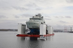 The future HMCS MAX BERNAYS is floated up in Bedford Basin - 23 Oct 2021 Source/Credit: Irving Shipbuilding, Halifax, NS