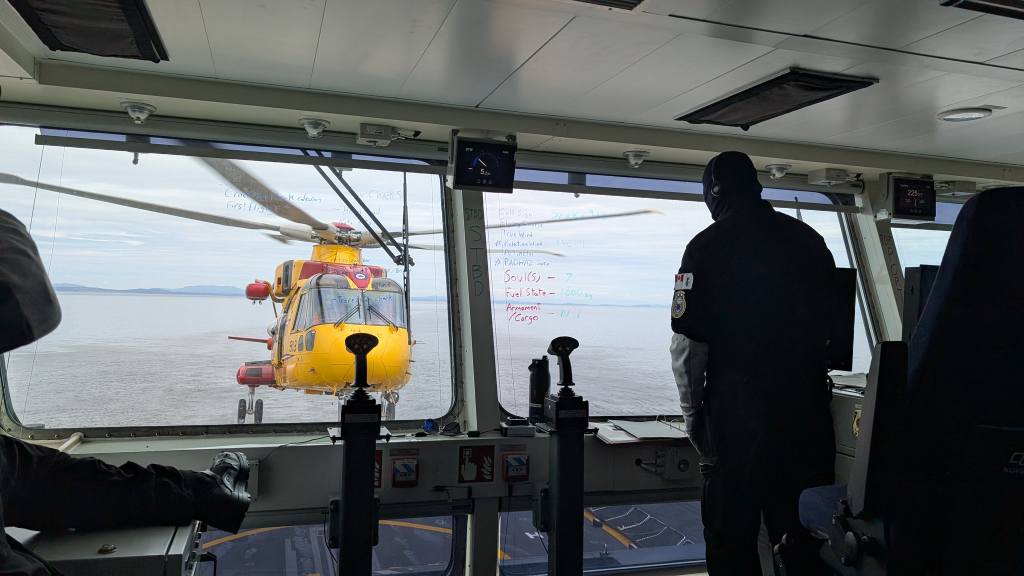 A Cormorant EH 101 lands on HMCS MAX BERNAYS during Day 1 of Exercise TRIDENT FURY 2025 - 16 Jun 2025 Photographer: Dave Murzur Source: Royal Canadian Navy Today and Yesterday facebook post
