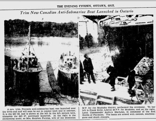 Christening and Launching of ML Q058 The Evening Citizen, Ottawa, 01 Oct 1942