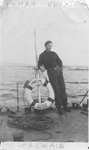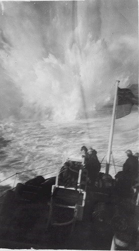(ES01) Norman?? Huckish, Cox'n, ML Q058 (ES02) Lt Stanley Garlick, RCNVR, CO of Q058 from 20 Jun 42 to 14 Feb 43 (ES03) Mascot for Q058 (ES04) Depth charge exploding astern of a ML (possibly Q058) (ES05) Rudy?? Dorion and Frankie Harding - (Do not know which is which) From the collection of Eldred Smith Courtesy of Paul Smith