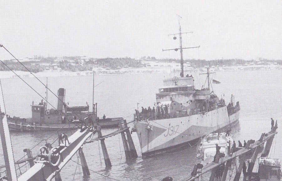 (Q082-004) HMCS MILLTOWN J317 assists Q082 into the slips at Pictou, NS - 11 Dec 1942 // Source: Ken Macpherson's Minesweepers of the Royal Canadian Navy 1938-1945 page 76 (Q082-005) Damage caused by a fuel explosion on ML Q082, 07 Sep 1944 // George Metcalf Archival Collection, CWM 20010066-039_p22 // Courtesy of the Canadian War Museum (Q082-006) Damage caused by a fuel explosion on ML Q082, September 7, 1944 // George Metcalf Archival Collection, CWM 20010066-039_p22 // Courtesy of the Canadian War Museum (Q082-007) ML Q082 // From the collection of Harold Colgan // Courtesy of Randall Colgan