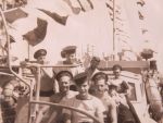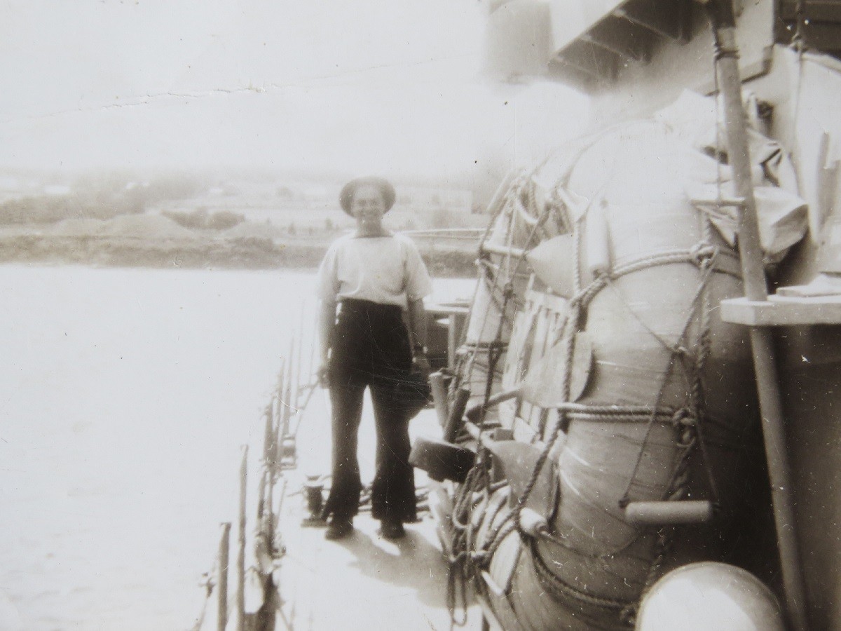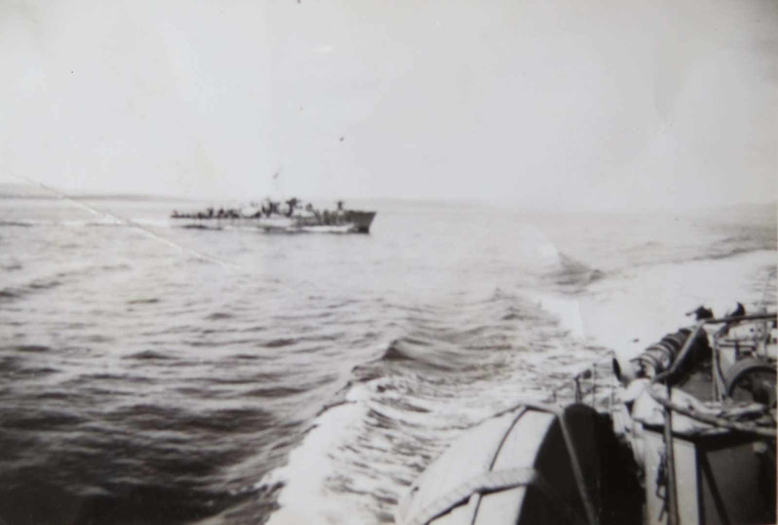Officers and Men on board an unknown Fairmile Motor Launch (GES035) Unknown ship along a Fairmile