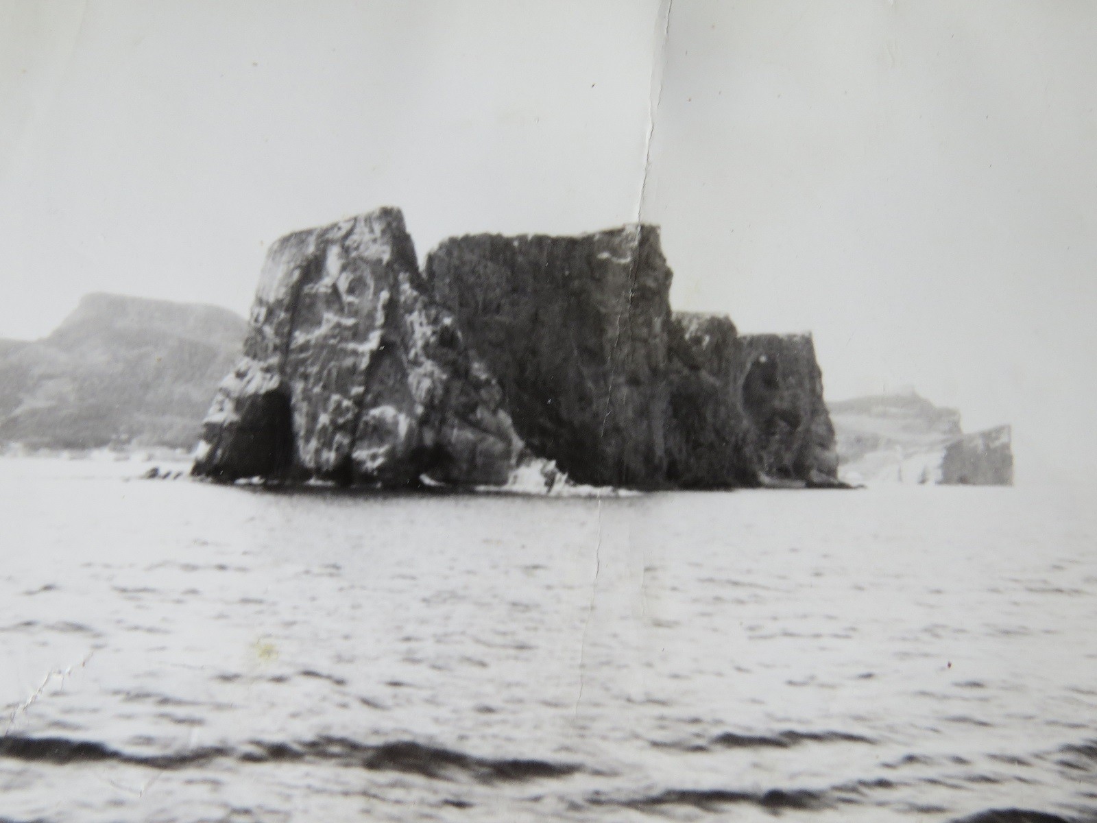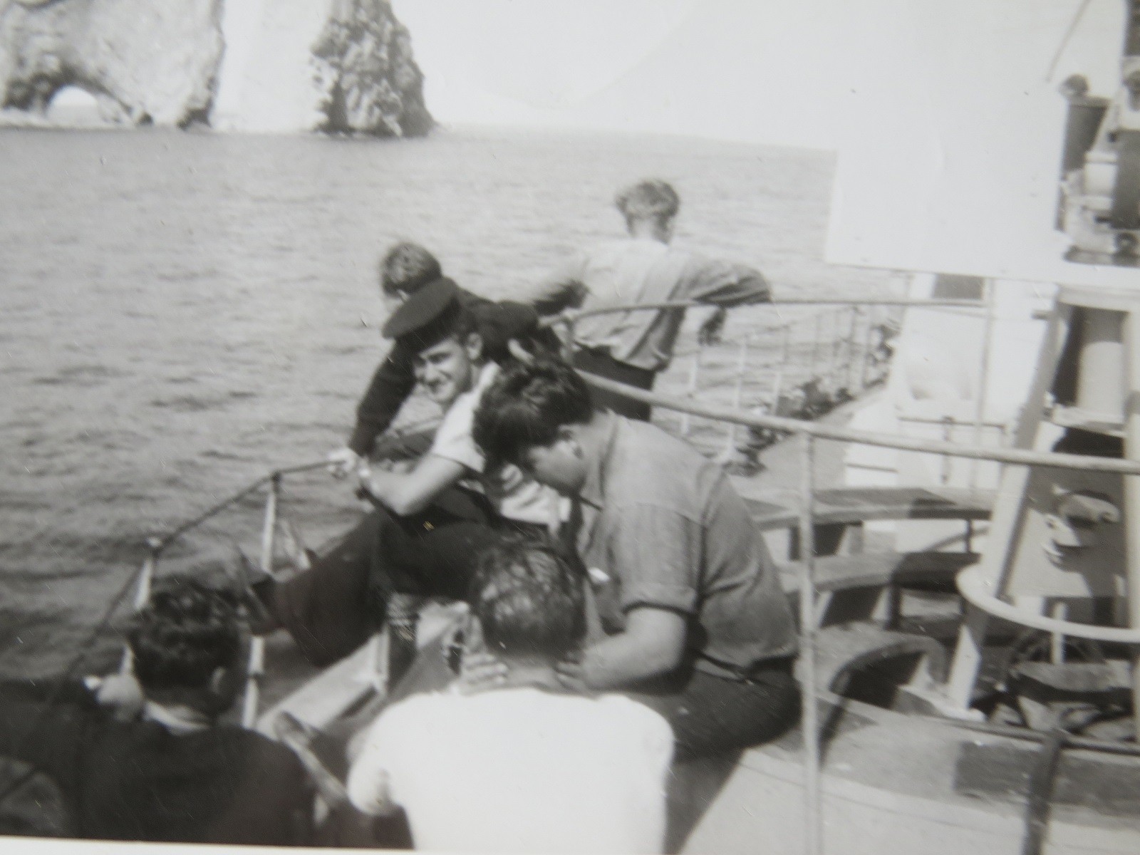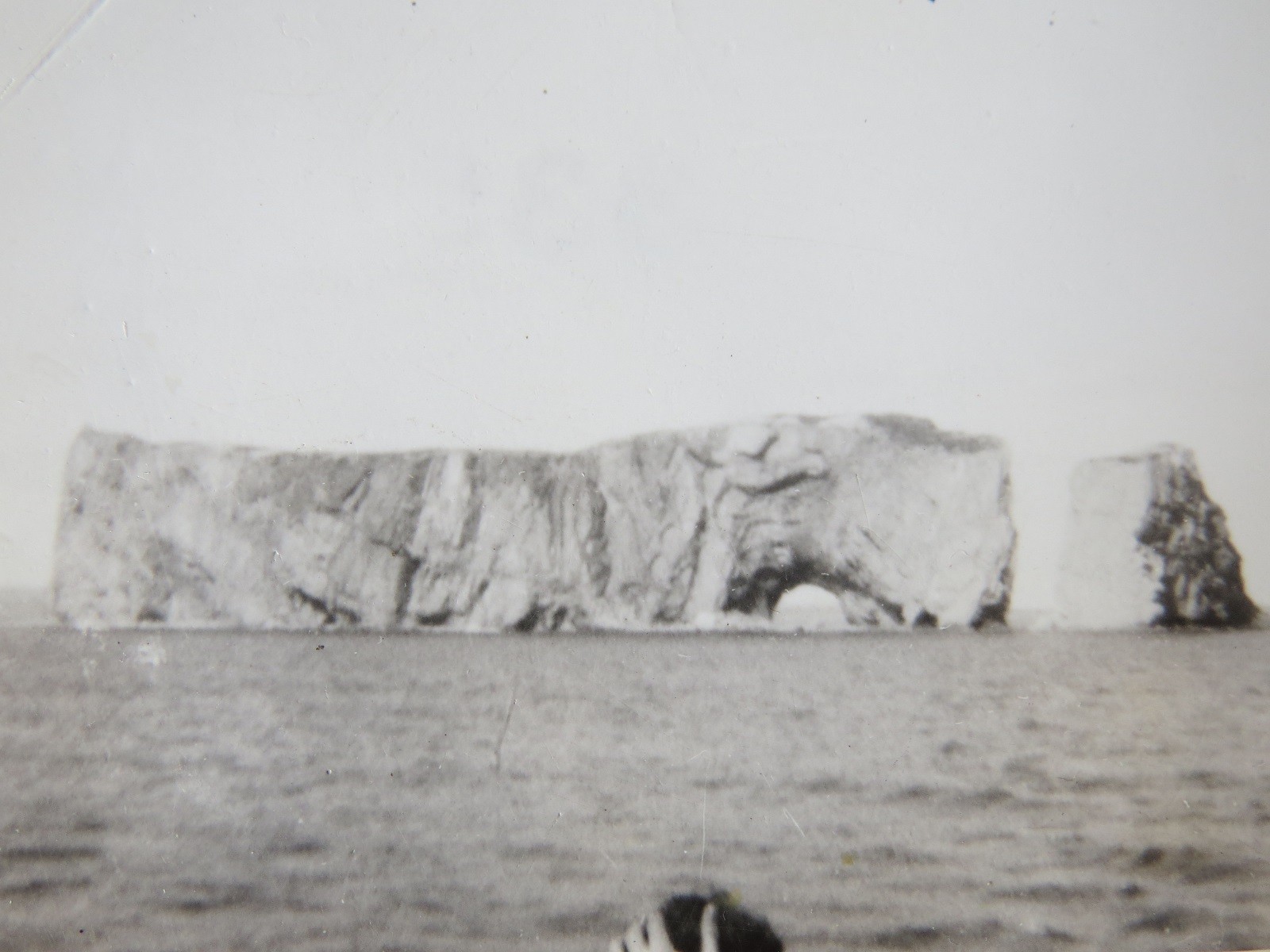 Percé Rock off the tip of the Gaspé Peninsula, Gulf of St. Lawrence (GES015) Fairmiles approaching Percé Rock, ML Q085 in the lead (GES016) Sailors on unknown Fairmile with Percé Rock in the background (GES017) Percé Rock