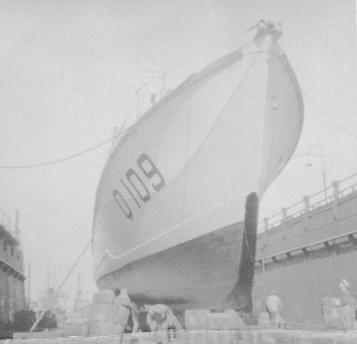 (WD016) ML Q109 in dry dock From the collection of Wilbrod Décarie, Lt, RCNR Courtesy of Claude Décarie