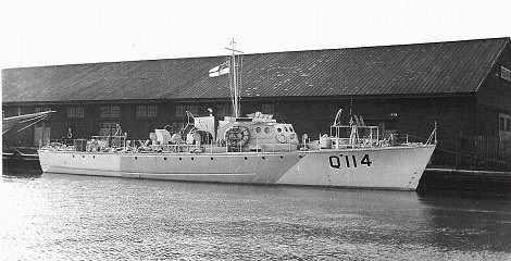 In Mar 1944 and Jan 1945, Q114 was listed as part of the 82nd ML Flotilla. After the war Q114 was transferred to and became RCMP vessel FORT SELKIRK but was never commissioned. She was sold to H. P. Leask and Roy Pyke, Halifax, Nova Scotia and renamed Amy Mae. Later purchased by George Drew in Clark’s Harbour, Nova Scotia; he used her to haul lobsters out of Western Nova Scotia over to Rockland, Maine. The Amy May was destroyed by fire in 1955.