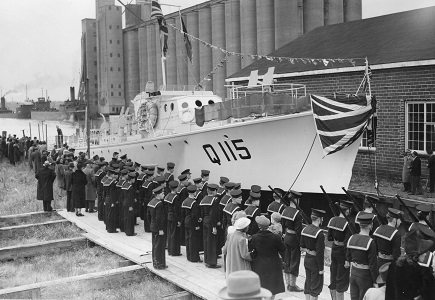 Built by Mac-Craft Ltd., Sarnia, Ont., she was delivered to the RCN on 16 Nov 1943. While she flew the White Ensign, she was not commissioned into the RCN but instead was listed as a tender to HMCS Sambro, the depot ship for escorts (tenders were not commissioned vessels). In Feb 1944 and Mar 1945, Q115 was listed as part of the 82nd ML Flotilla. Sold in 1945 to the Upper Lakes and St. Lawrence Transportation Company, Toronto, she was renamed Nelvana, later Outre Mer.