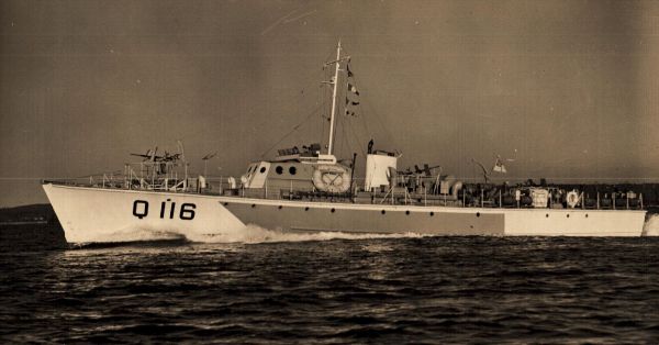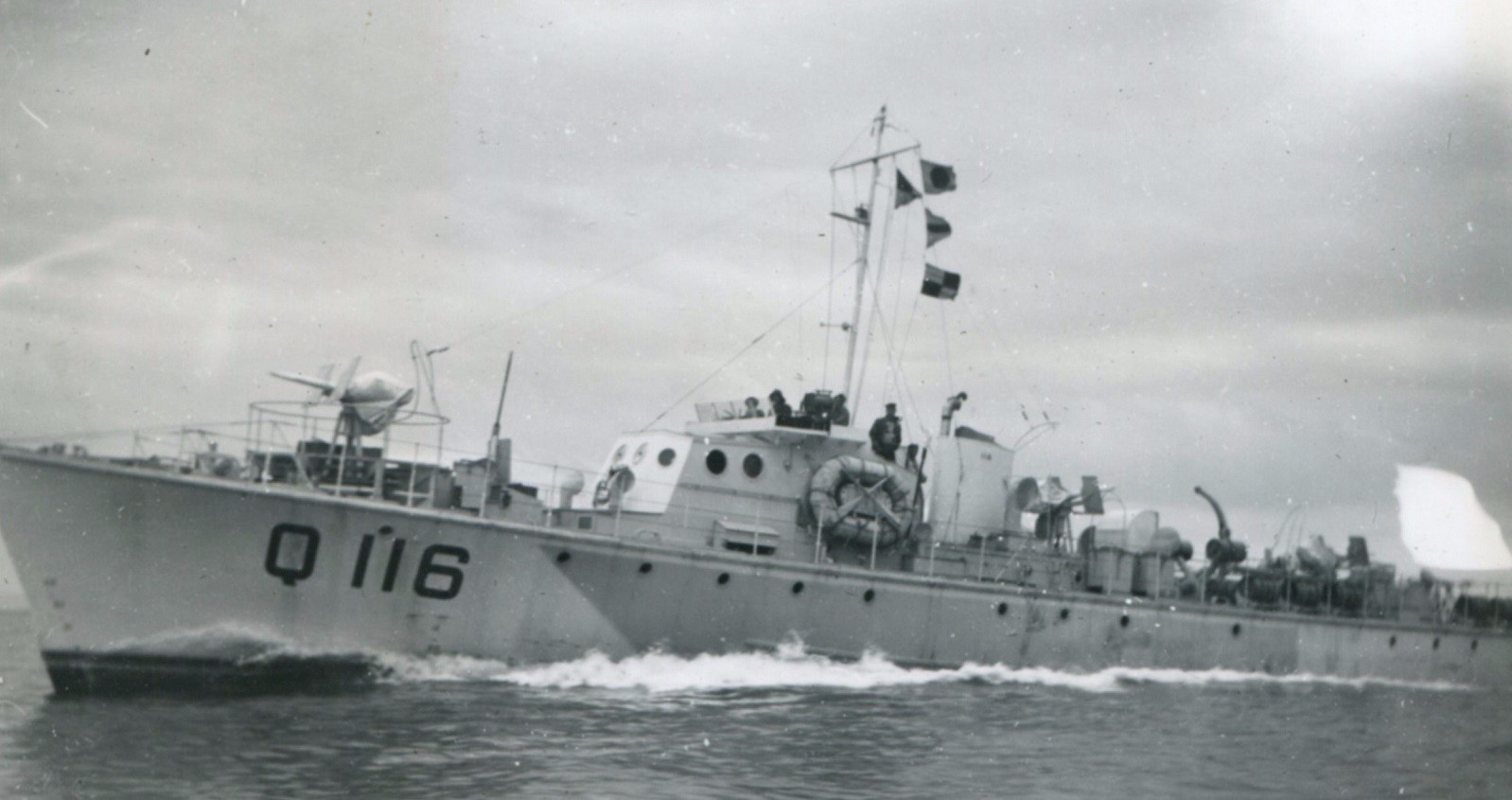 Q116 was a "B" Type ML, Displacement: 79 tons, Length: 112 ft, Beam: 17 ft, Draught: 4.9 ft, Speed: 22 kts, Complement: 3 officers, 14 men, Armament: 3-20mm.