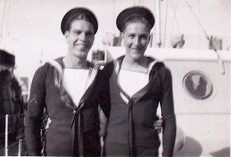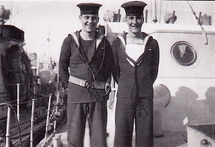 (TM09-TM10) Surrendered German U-boat U-889 (TM11) Ted McCullogh (right) and shipmate (TM12) Ted McCullogh (right) with Quartermaster (left) on ML Q120 (TM13) ML Q120 - location unknown From the collection of James Edward (Ted) McCullogh Courtesy of Bruce McCullogh