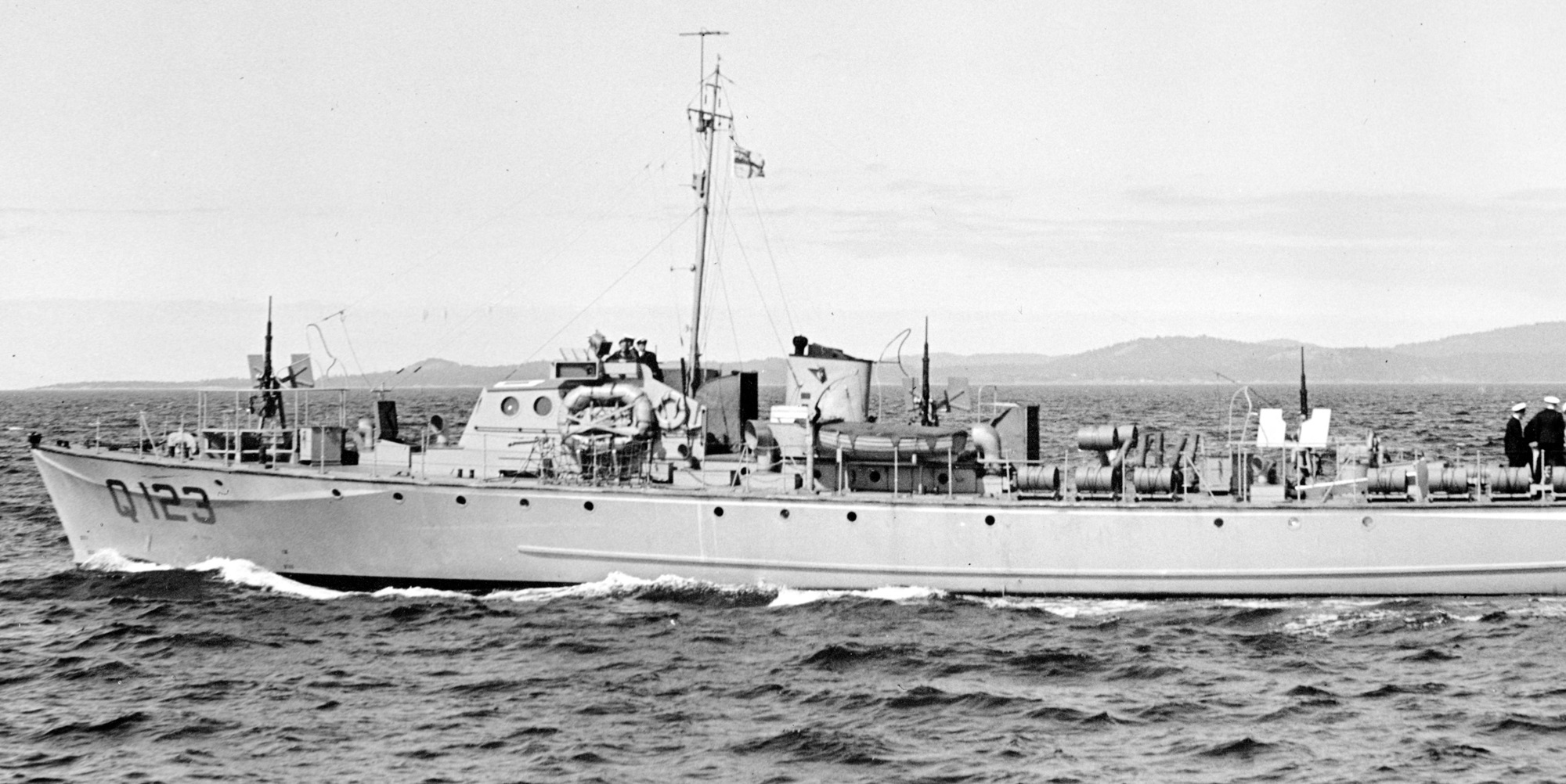 Q123 was a Type "B" ML, Displacement: 79 tons, Length: 112 ft, Beam: 17 ft, Draught: 4.9 ft, Speed: 22 kts, Complement: 3 officers, 14 men, Armament: 3-20mm.