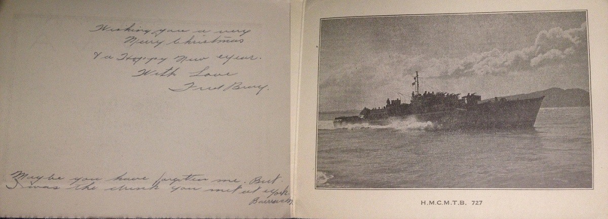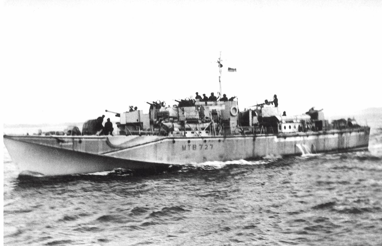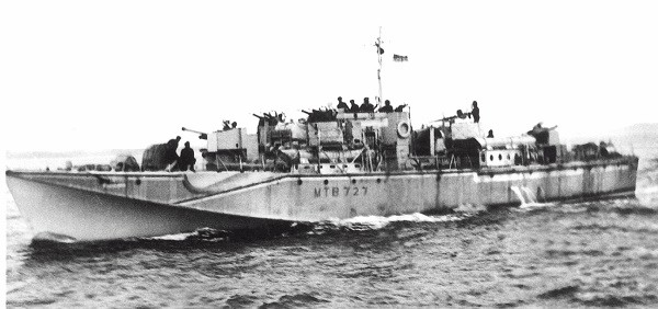 In Jan 1944, MTB 727 was listed as part of the 65th MTB Flotilla. She was a Type "D" MTB, Displacement: 102 tons, Length: 115 ft, Beam: 21.25 ft, Draught: 5.25 ft, Speed: 29 kts, Complement: 4 officers, 28 men, Armament: 2-6pdrs, 2-20mm(1xII), 2-18in TT. While she flew the White Ensign, she was not commissioned into the RCN but instead was listed as a tender to HMCS Stadacona (tenders were not commissioned vessels). MTB 727 took part in the D-Day landings on 06 Jun 1944. MTB 727 was returned to the RN on 21 May 1945.