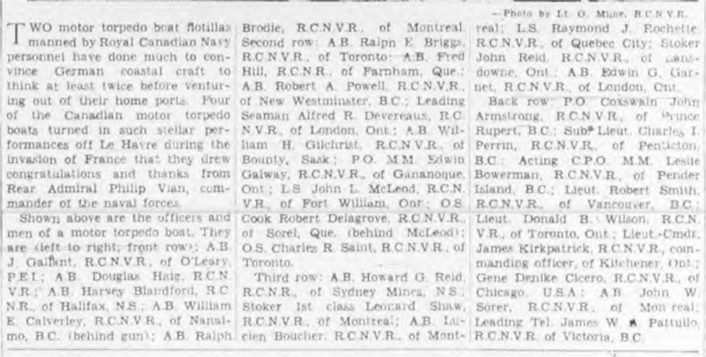 Smith, Robert, Lt, RCNVR (of Vancouver, BC), Wilson, Donald