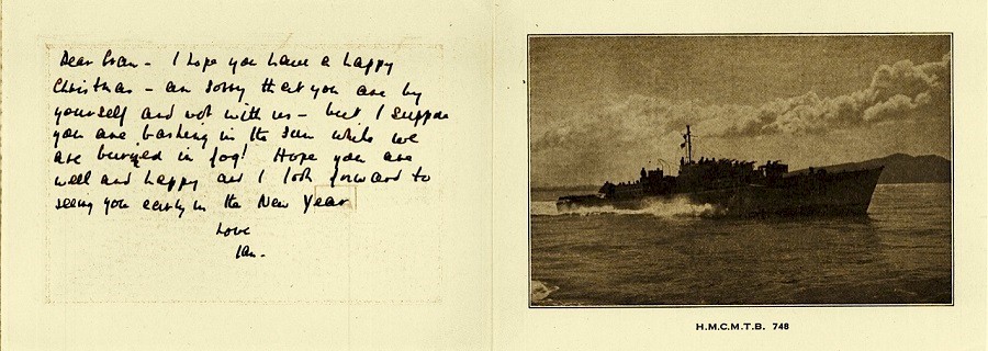 Card from Ian J. Davidson to his grandmother in 1944. Ian