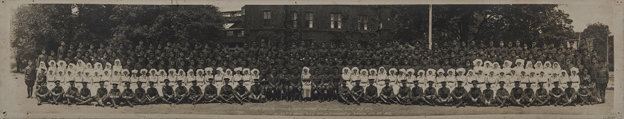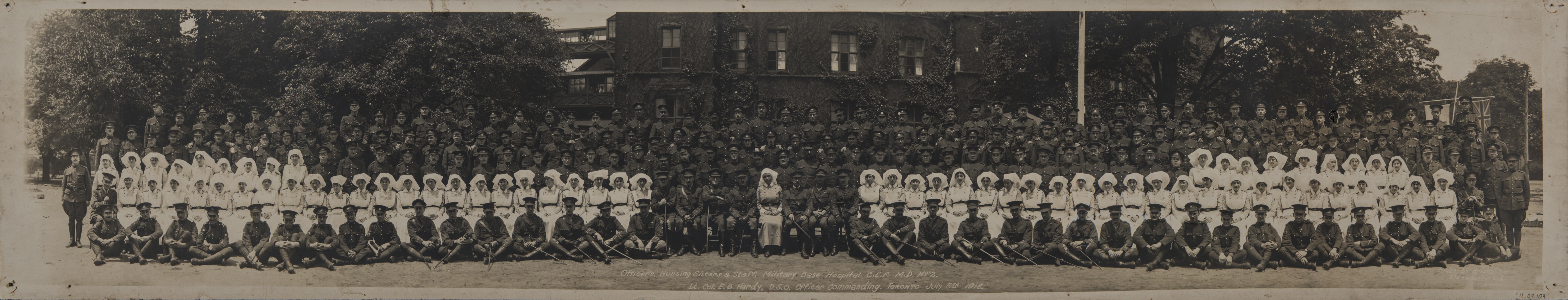 Officers, Nursing Sisters & Staff, Military Base Hospital, C.E.F. M.D. No. 2 Lt. Col. E. B. Hardy, D.S.O. Officer Commanding. Toronto, July 15th 1918